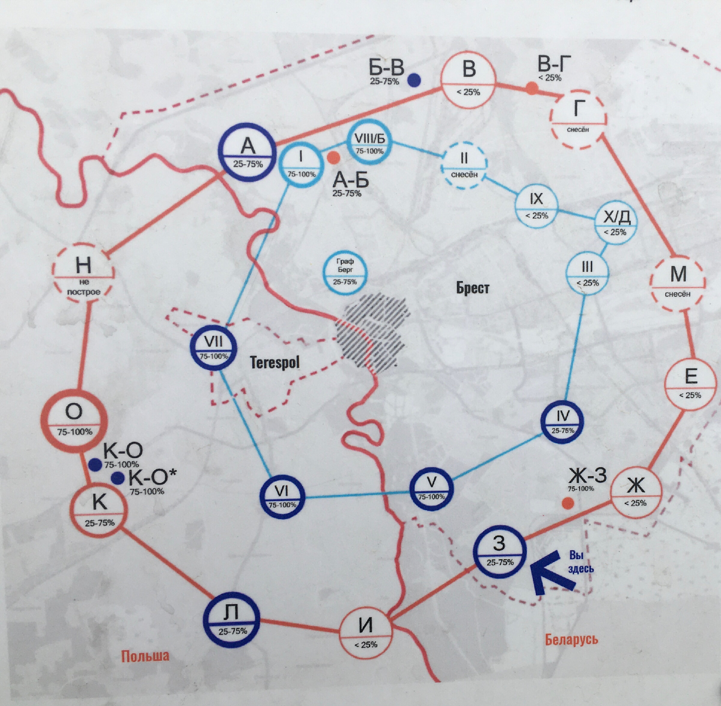 схема фортификационных сооружений Брестской крепости
