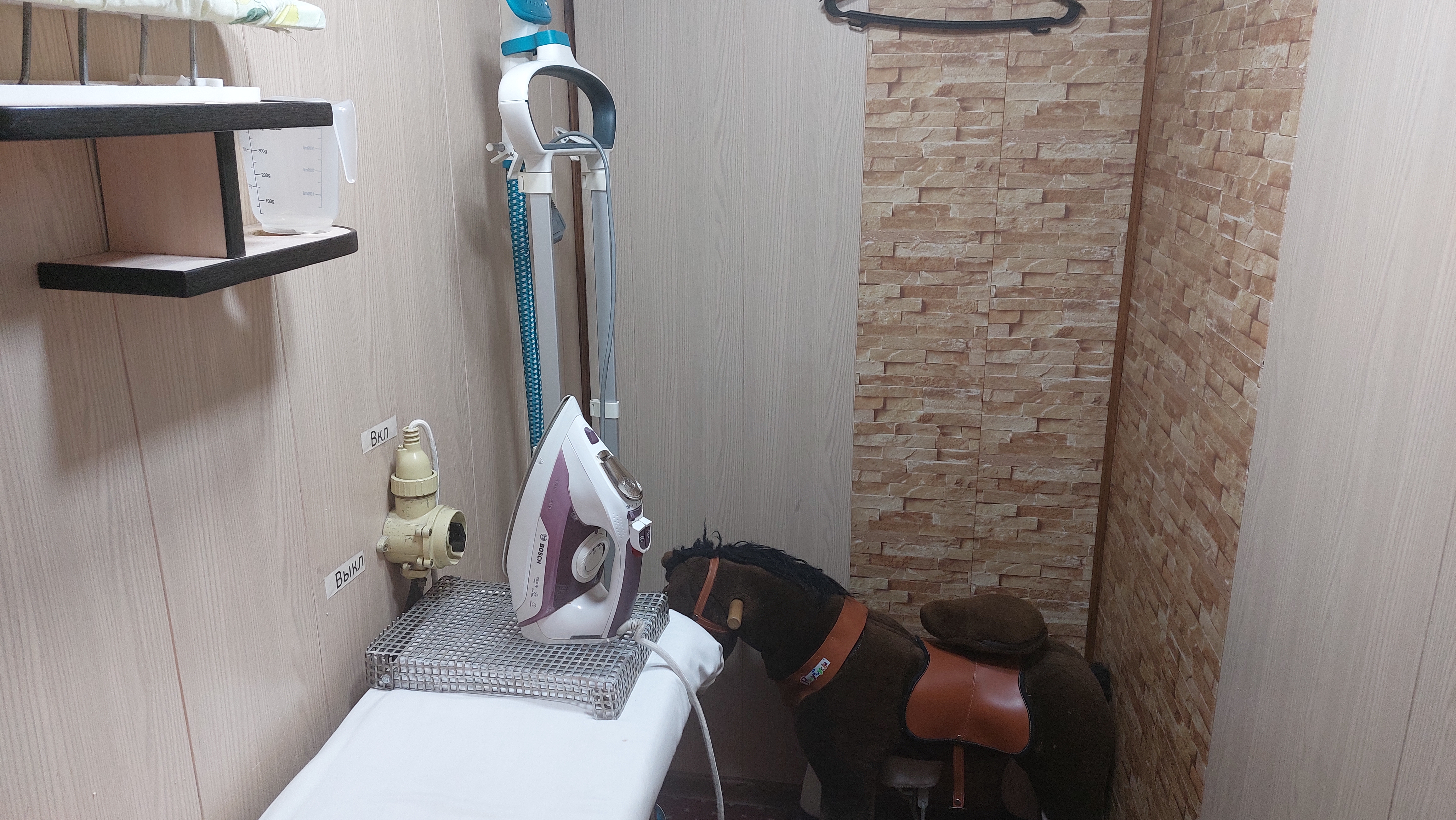 Немного влезу в чужое повествование. Перед круизом решил не гладить одежду, а сделать это на теплоходе. Поэтому сразу пошёл в гладильную комнату. Там обнаружились лошадка (гладить?), интересный светильник и температура почти сауны, больше 30 точно. Пришлось гладить в одних трусах. Тогда я еще не знал, что с температурой на этом теплоходе массовые проблемы (в прошлом году их вроде не было).