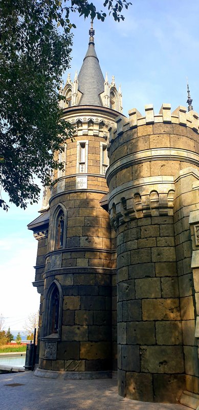 Наш водитель , с которым я договорилась о поездке, нас не только отвёз в замок Гарибальди, где выполнял еще и роль нашего фотографа, но еще отвез и на новую набережную, затем к памятнику Татищева, основателя Тольятти , завёз в заключении в мужской Воскресенский монастырь. На теплоход прибыли за 10 минут до отправления.