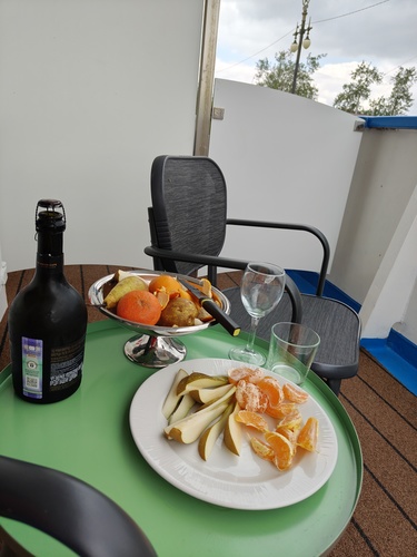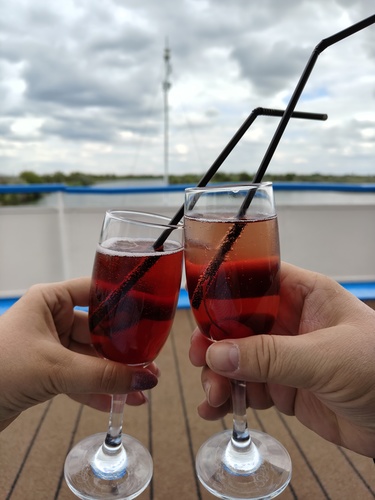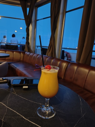 Здесь, конечно, уже никакого звездного неба. Греемся коктейлями в баре и опять не можем насмотреться вокруг. Ну и полное ощущение, что идём по морю.
