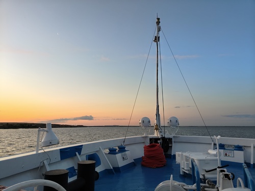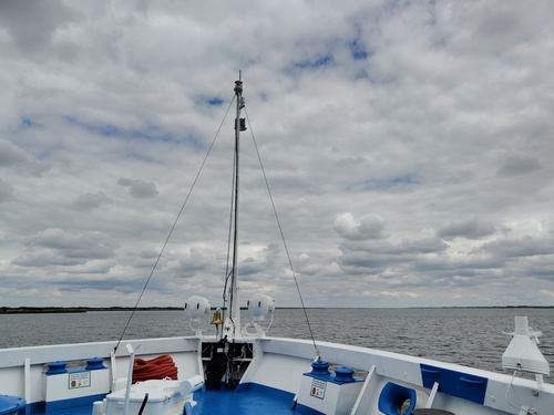 За бортом сразу меняется погода, резко холодает, поднимается ветер, а палубу облепляют, как уже выяснилось, однодневки. Да и покачивать начинает.