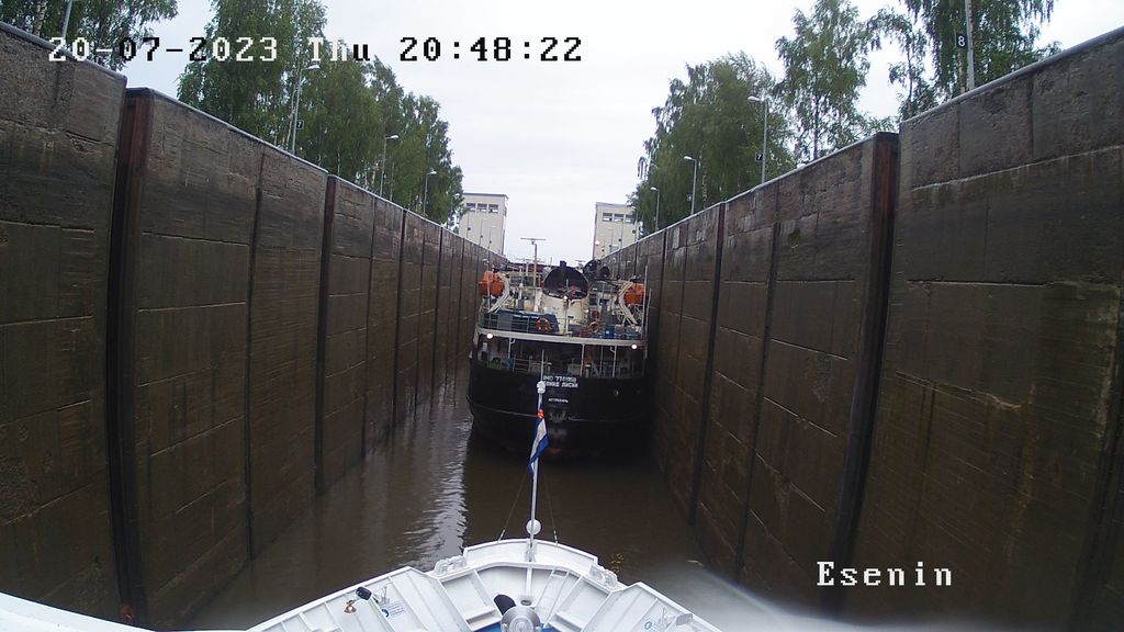 "Сергей Есенин" в Лодейном поле, вниз идет "Волга Дрим".