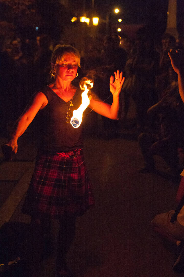 август 2012 года, ул. Ленинградская - танцы с огнем под волынки и барабаны.
