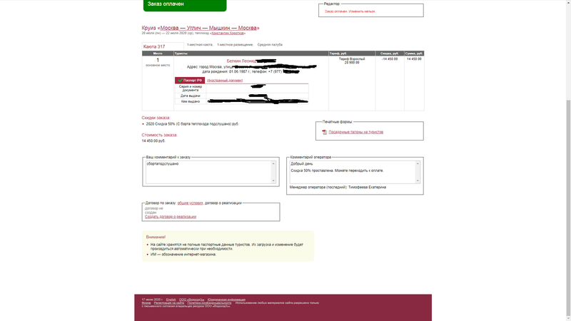 Спасибо,друзья ! Промокод работает, моя каюта на " Короткове " 421, оформлял через менеджера Василису,очень помогла,спасибо ей за это. До встречи на борту,Мимоза,Леонид !