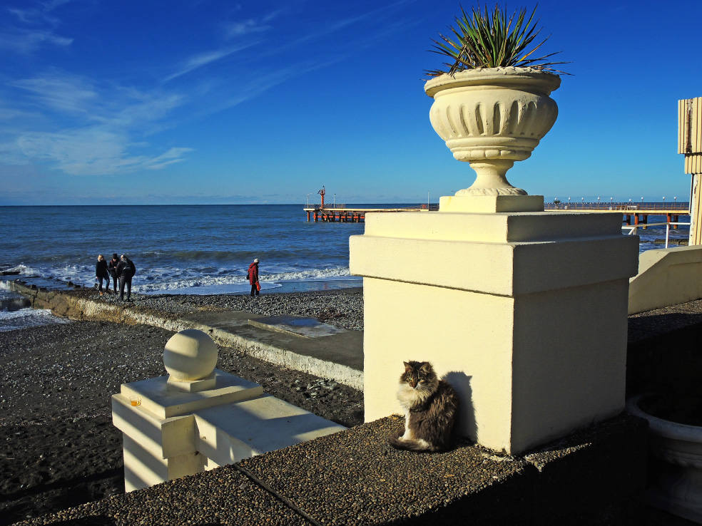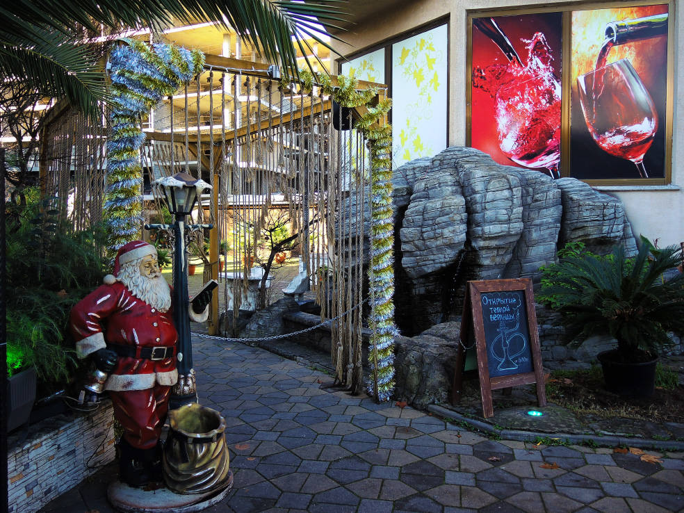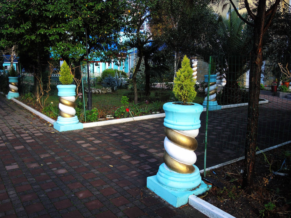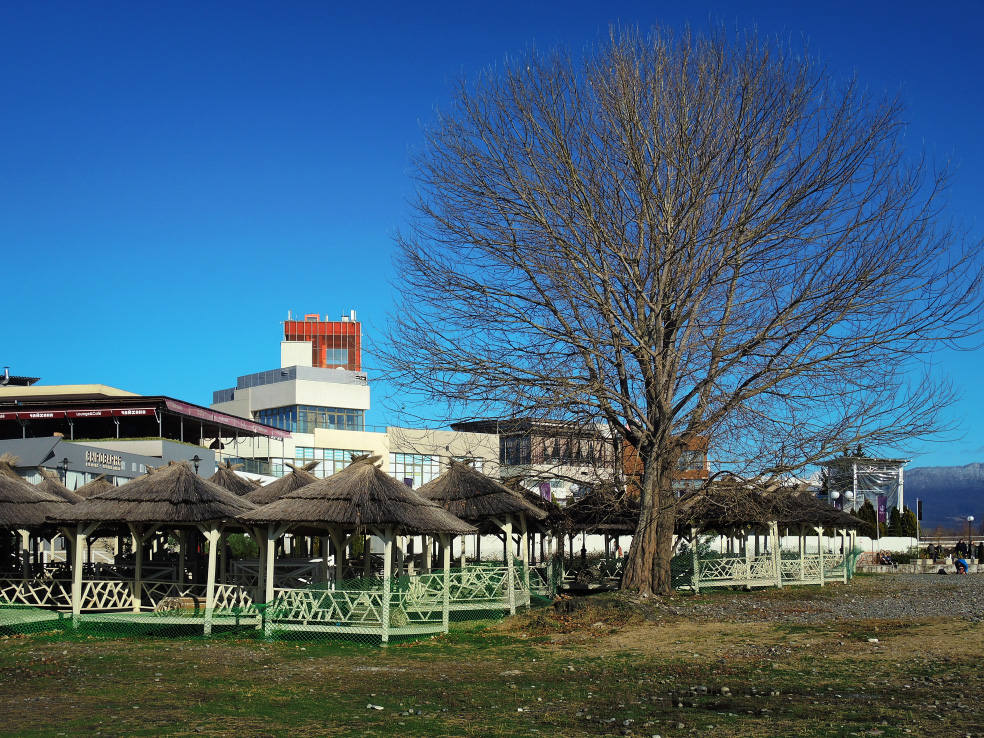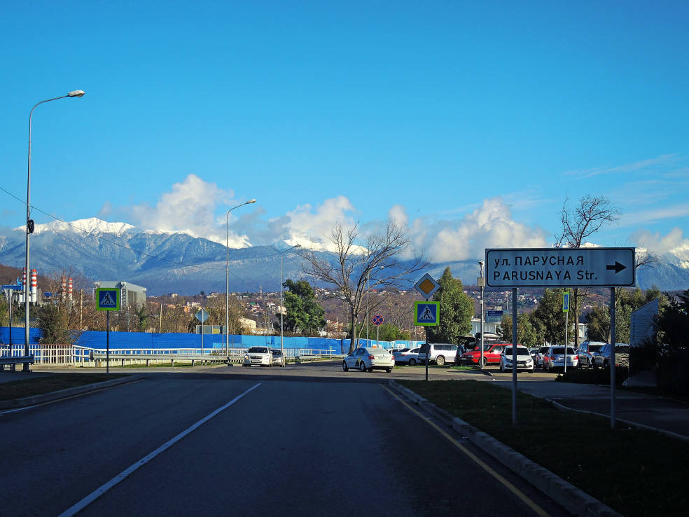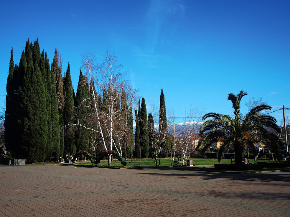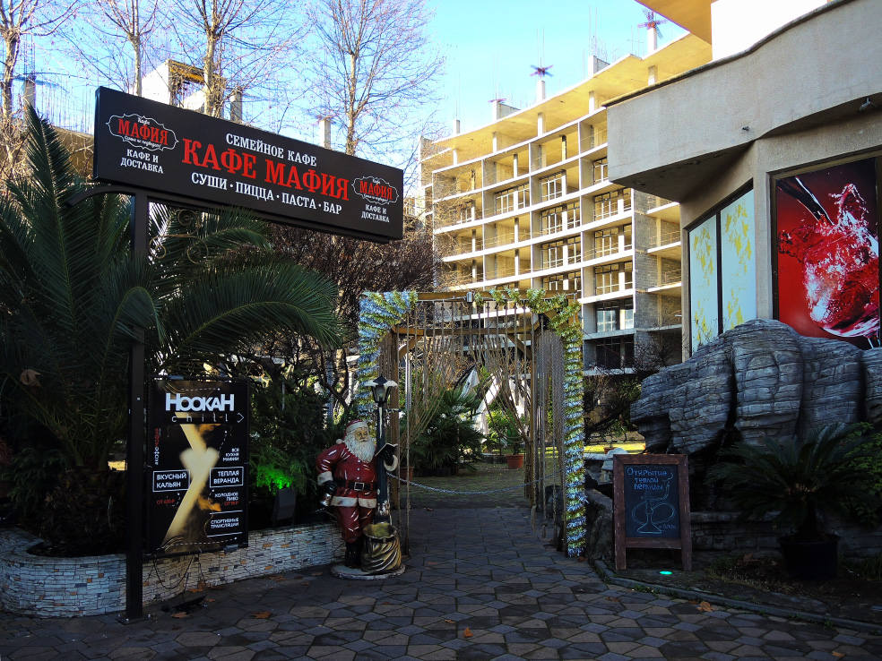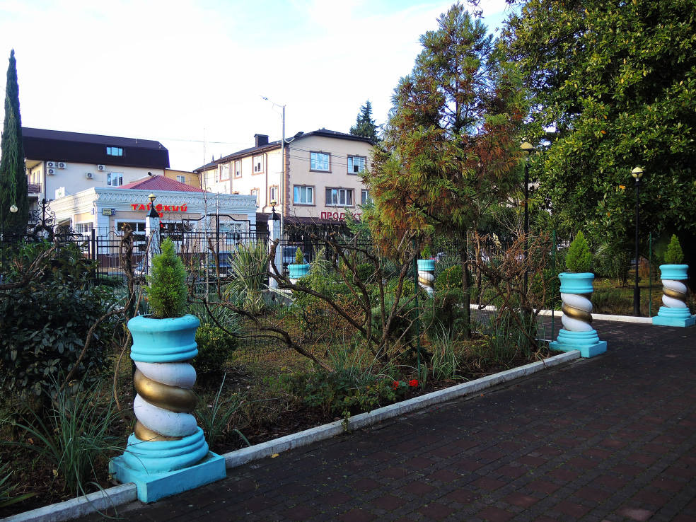 2 января. От вчерашнего не осталось и следа. С самого утра светит солнце. Снова тепло. Можно съездить на какую-нибудь экскурсию. В первый день набрали расписания в разных точках продаж, чтобы спокойно изучить все предложения и выбрать самое интересное. Выделил для себя несколько вариантов. Один из них был заявлен как раз на этот день. После завтрака мы дошли до точки, где продавали эту экскурсию. Продавец оказалась на месте, группа в поездку набиралась. Мы тоже купили билеты. Начало экскурсии - ближе к обеду. Поэтому у нас было время прогуляться по окрестностям. Кому-то эта часть может показаться скучной, потому что всё это я уже показывал не один раз. Вы можете просто промотать её. Лично мне этот район Адлера очень нравится и мне не надоедает прогуливаться здесь. Ни реально, ни виртуально.