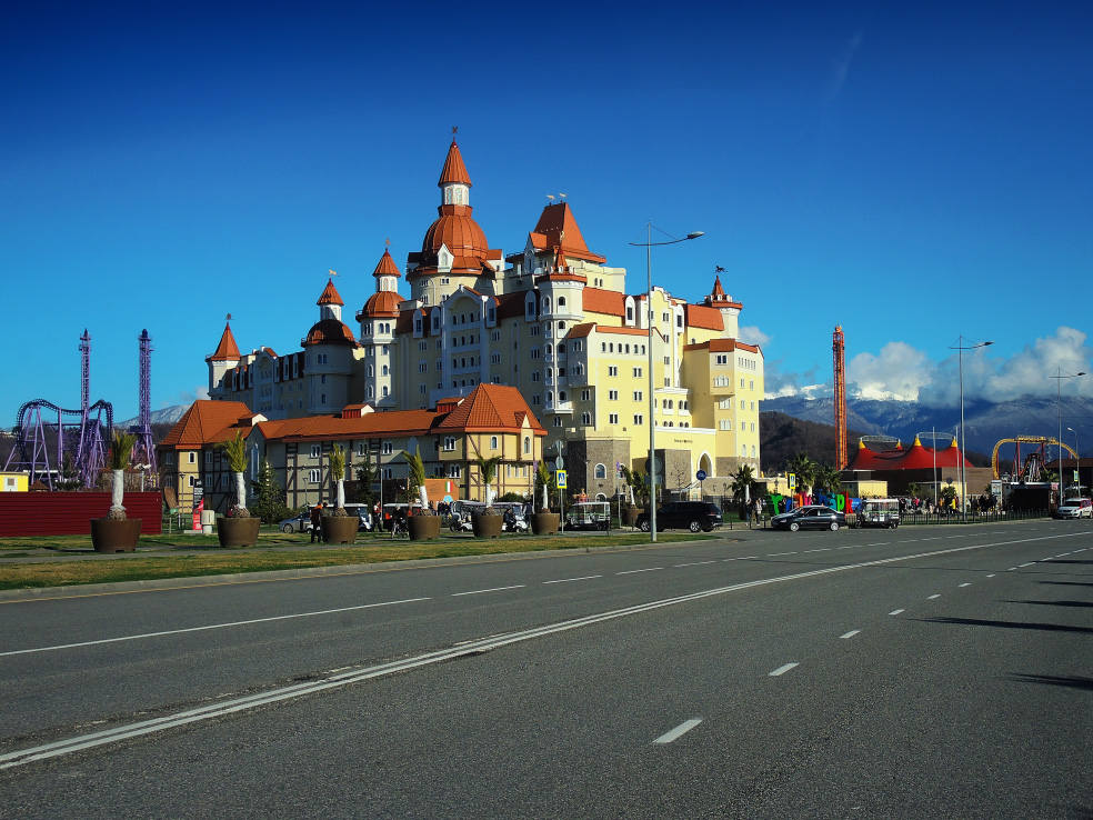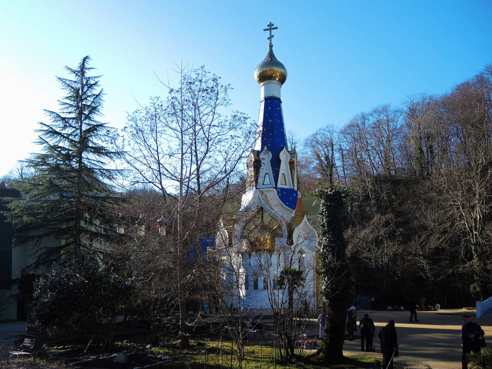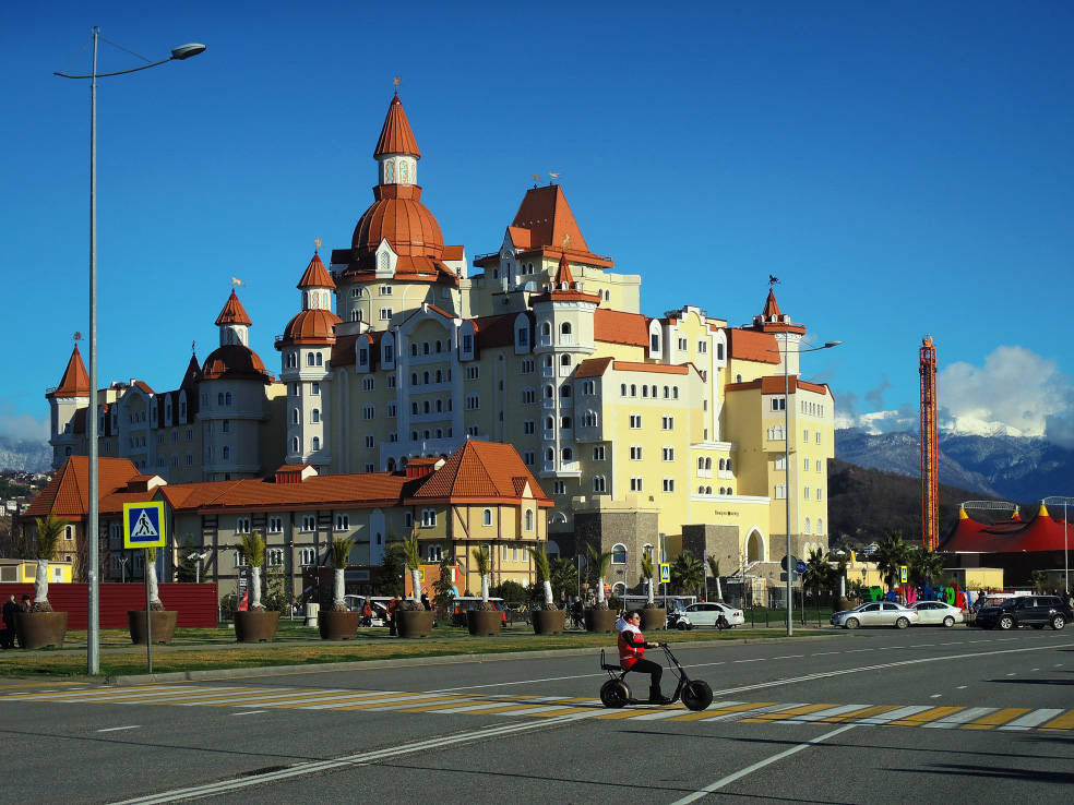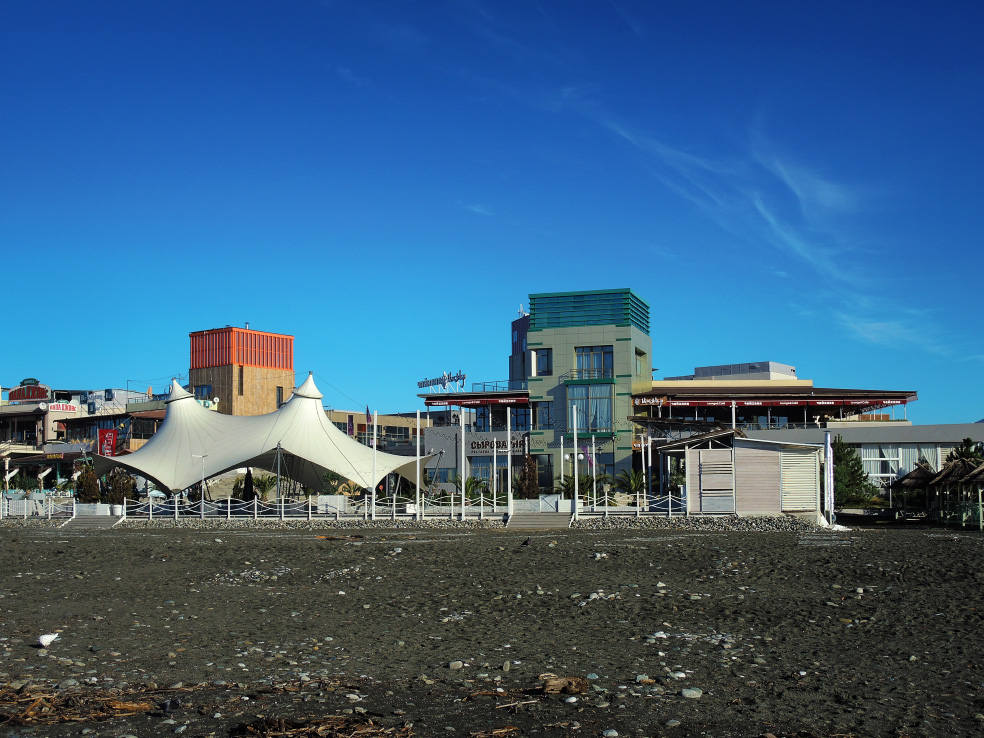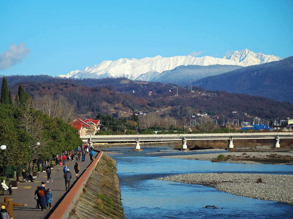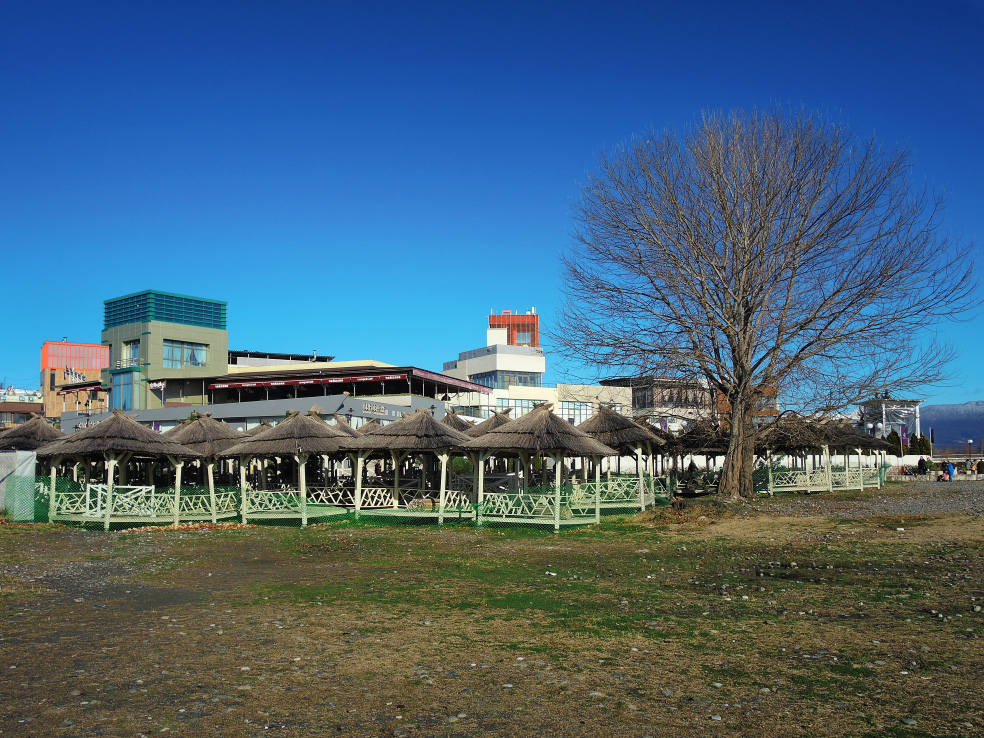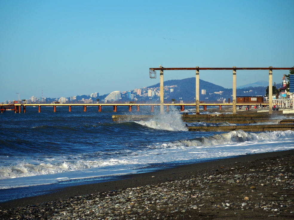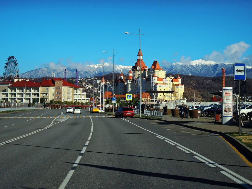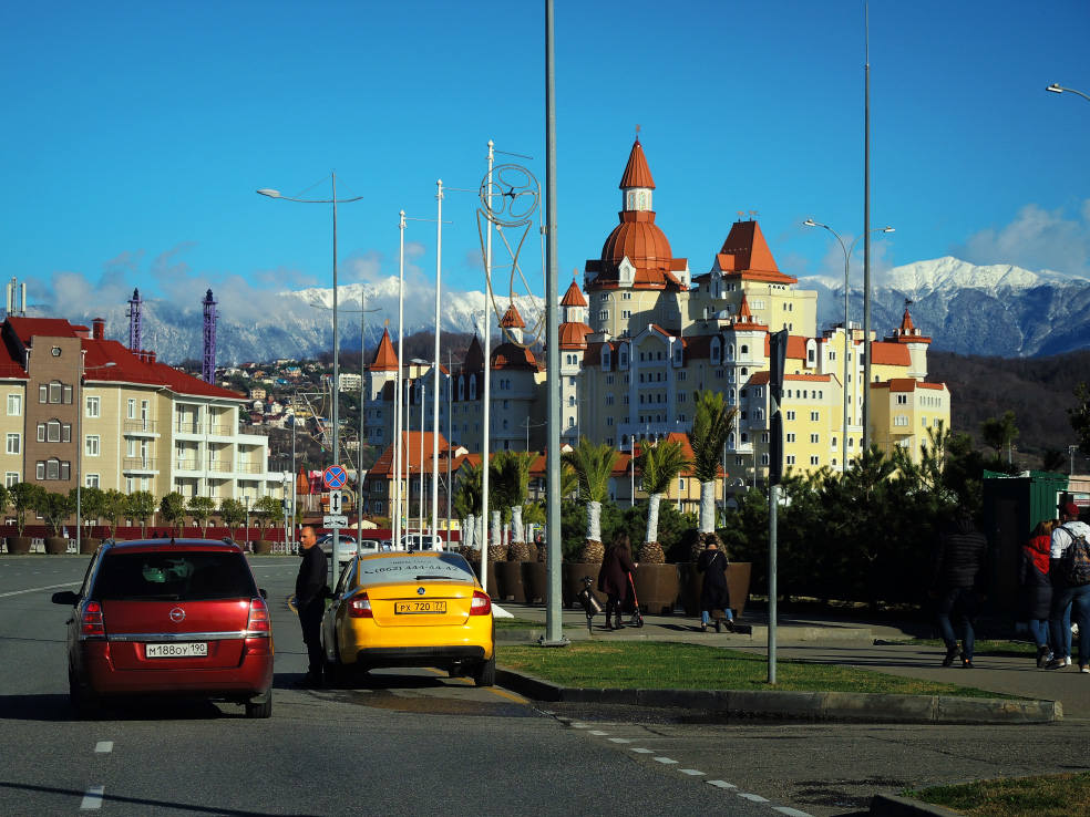 2 января. От вчерашнего не осталось и следа. С самого утра светит солнце. Снова тепло. Можно съездить на какую-нибудь экскурсию. В первый день набрали расписания в разных точках продаж, чтобы спокойно изучить все предложения и выбрать самое интересное. Выделил для себя несколько вариантов. Один из них был заявлен как раз на этот день. После завтрака мы дошли до точки, где продавали эту экскурсию. Продавец оказалась на месте, группа в поездку набиралась. Мы тоже купили билеты. Начало экскурсии - ближе к обеду. Поэтому у нас было время прогуляться по окрестностям. Кому-то эта часть может показаться скучной, потому что всё это я уже показывал не один раз. Вы можете просто промотать её. Лично мне этот район Адлера очень нравится и мне не надоедает прогуливаться здесь. Ни реально, ни виртуально.