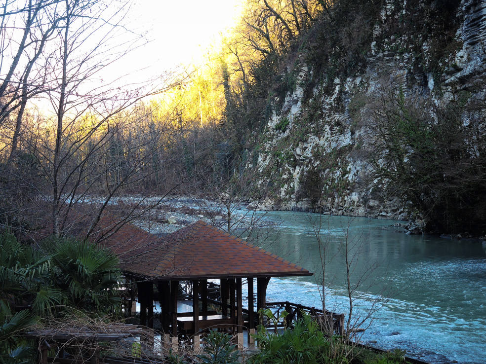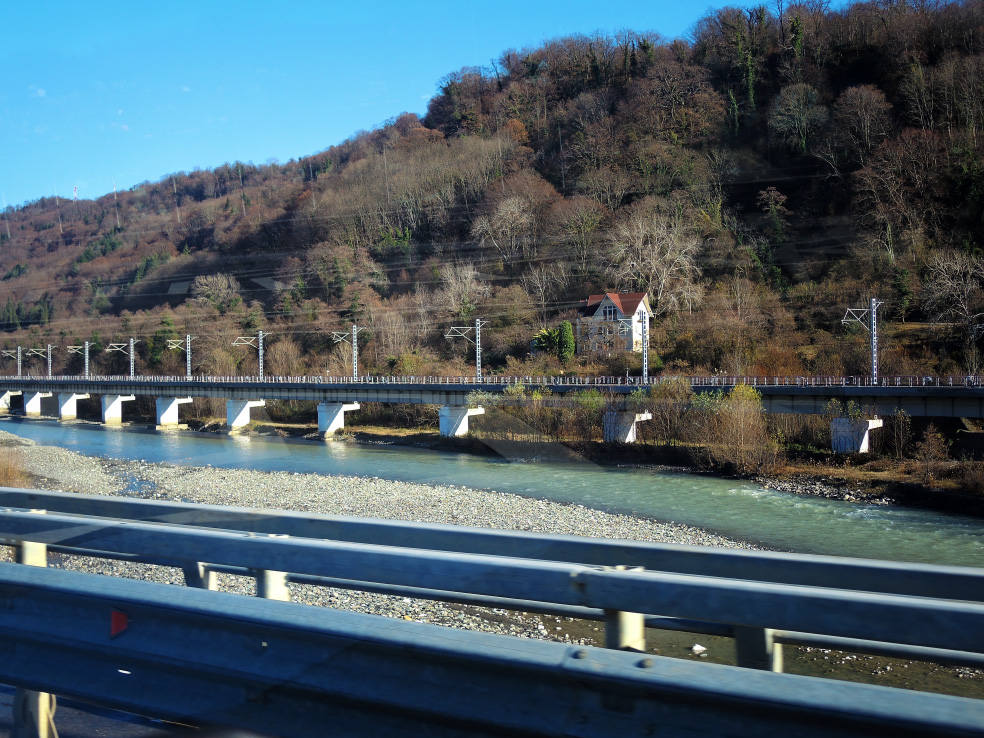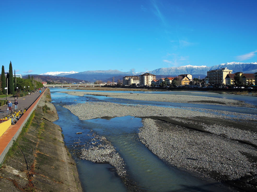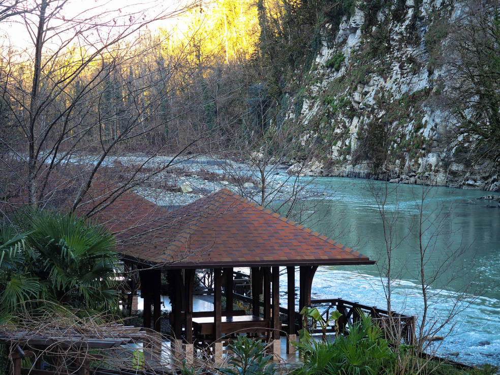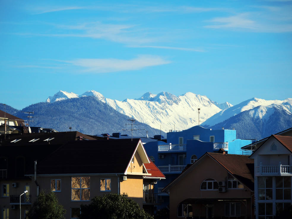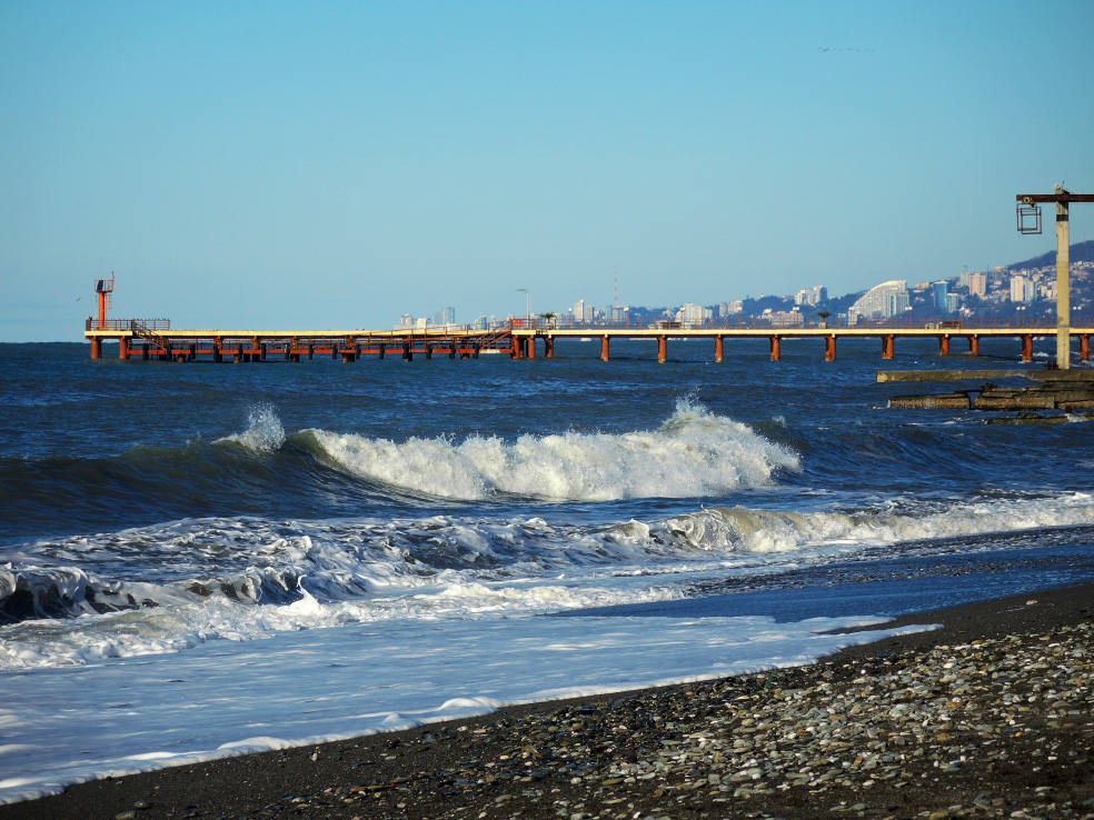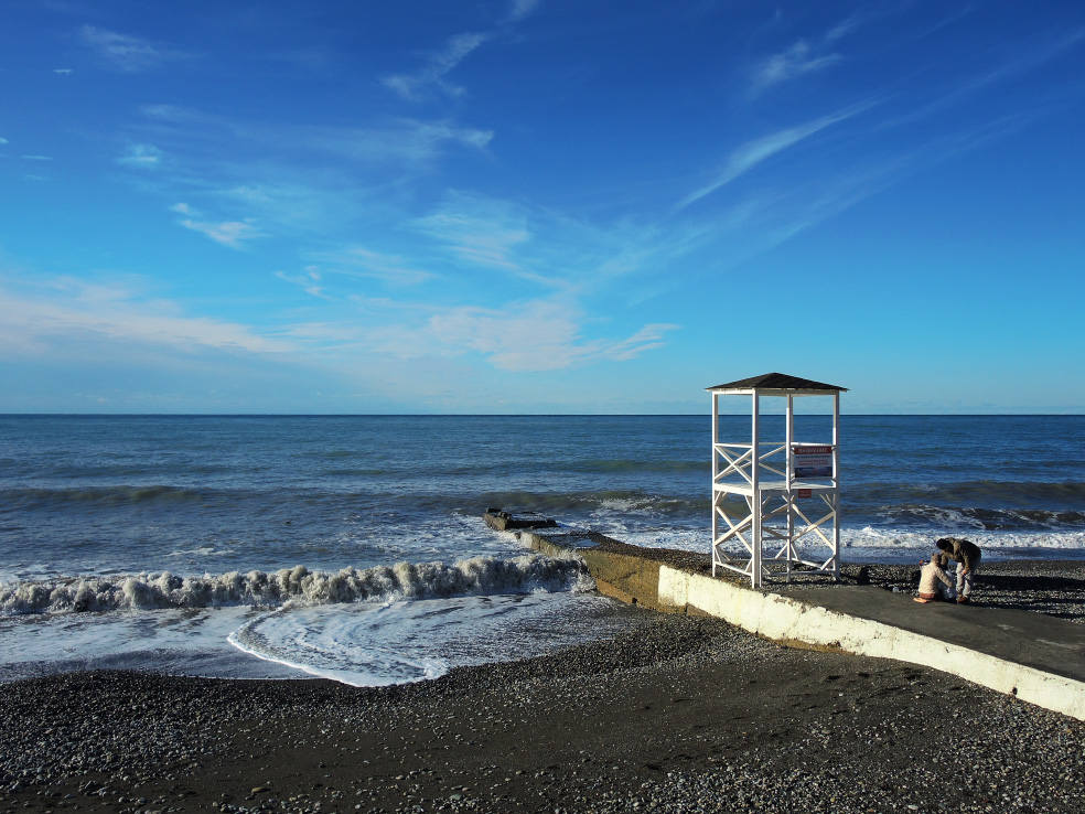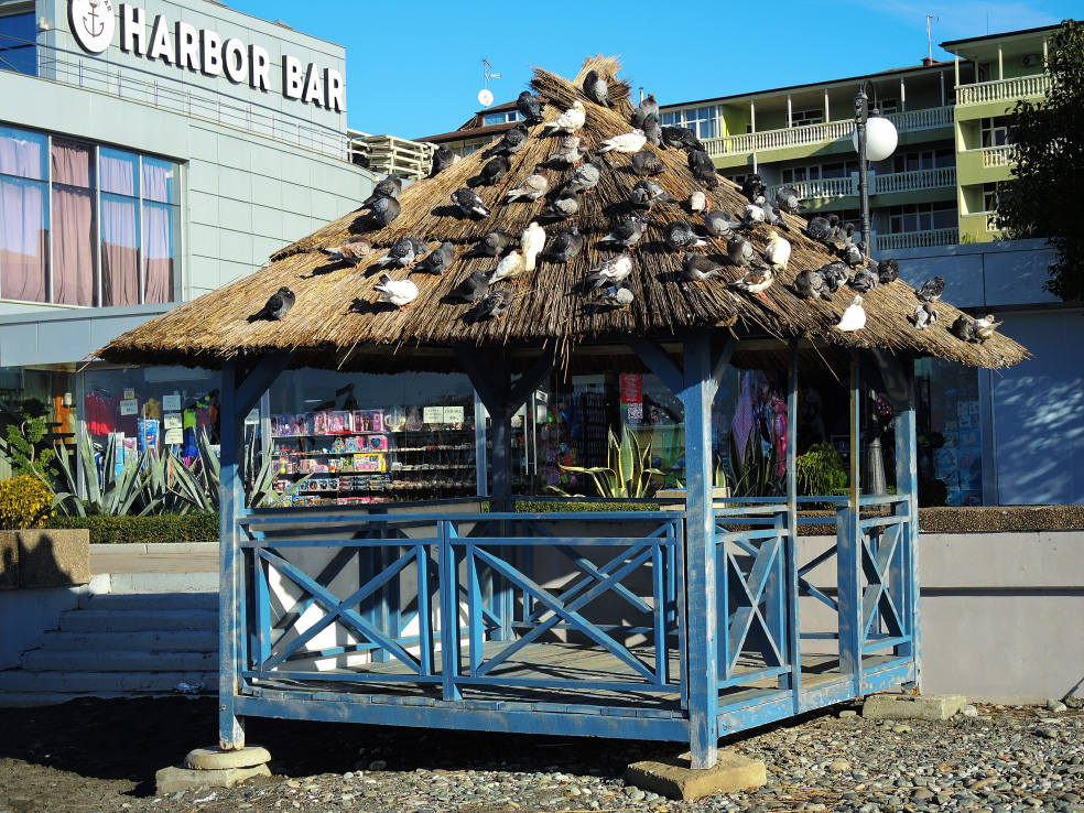 2 января. От вчерашнего не осталось и следа. С самого утра светит солнце. Снова тепло. Можно съездить на какую-нибудь экскурсию. В первый день набрали расписания в разных точках продаж, чтобы спокойно изучить все предложения и выбрать самое интересное. Выделил для себя несколько вариантов. Один из них был заявлен как раз на этот день. После завтрака мы дошли до точки, где продавали эту экскурсию. Продавец оказалась на месте, группа в поездку набиралась. Мы тоже купили билеты. Начало экскурсии - ближе к обеду. Поэтому у нас было время прогуляться по окрестностям. Кому-то эта часть может показаться скучной, потому что всё это я уже показывал не один раз. Вы можете просто промотать её. Лично мне этот район Адлера очень нравится и мне не надоедает прогуливаться здесь. Ни реально, ни виртуально.