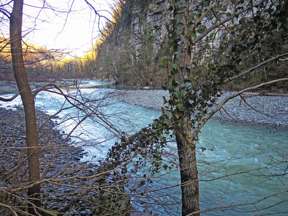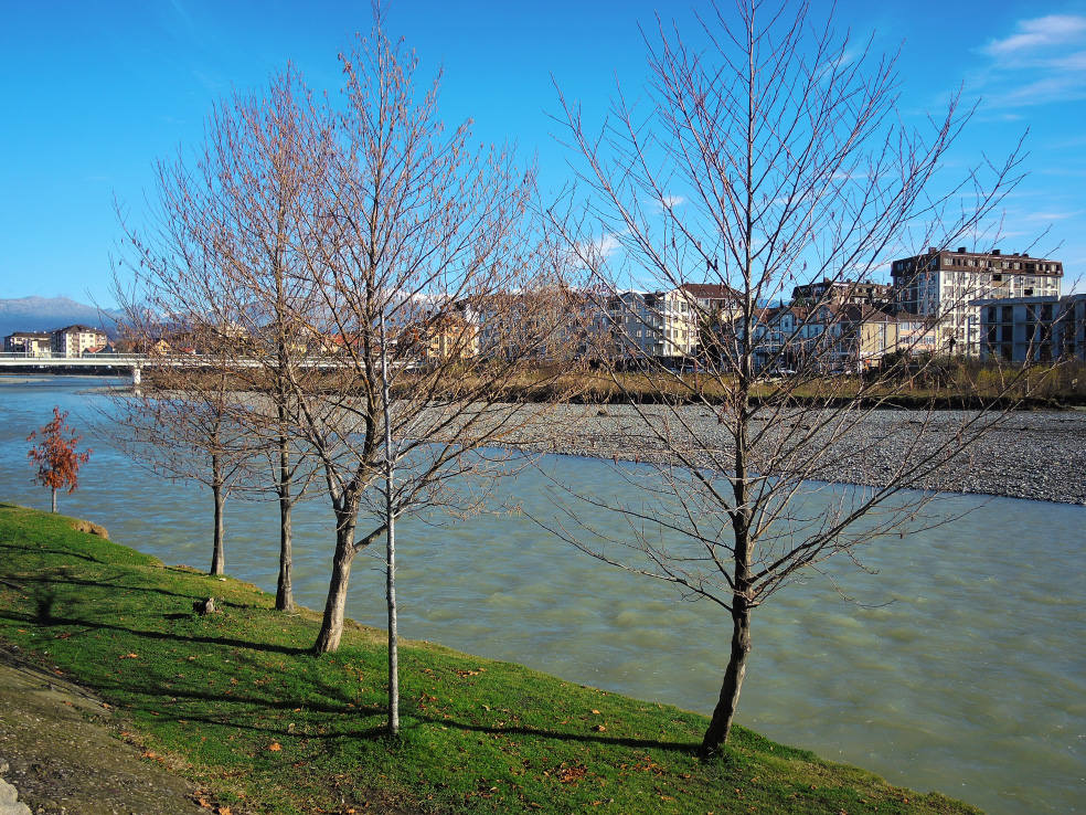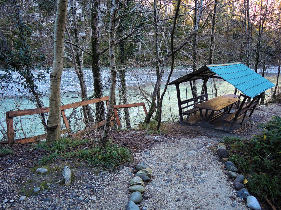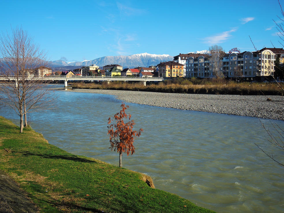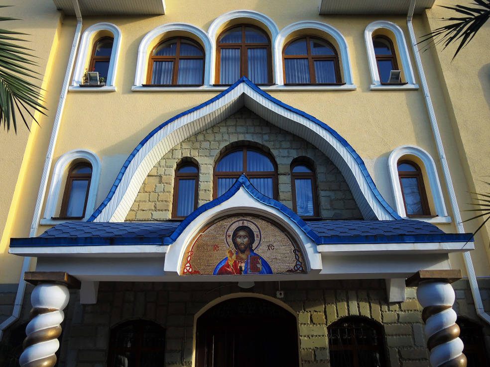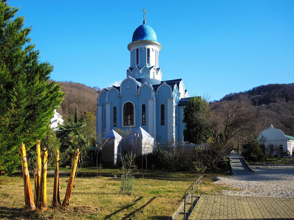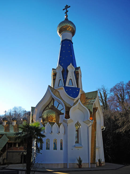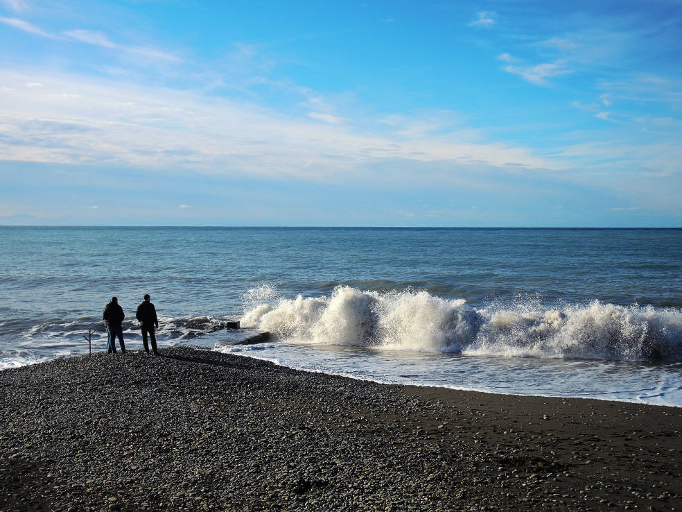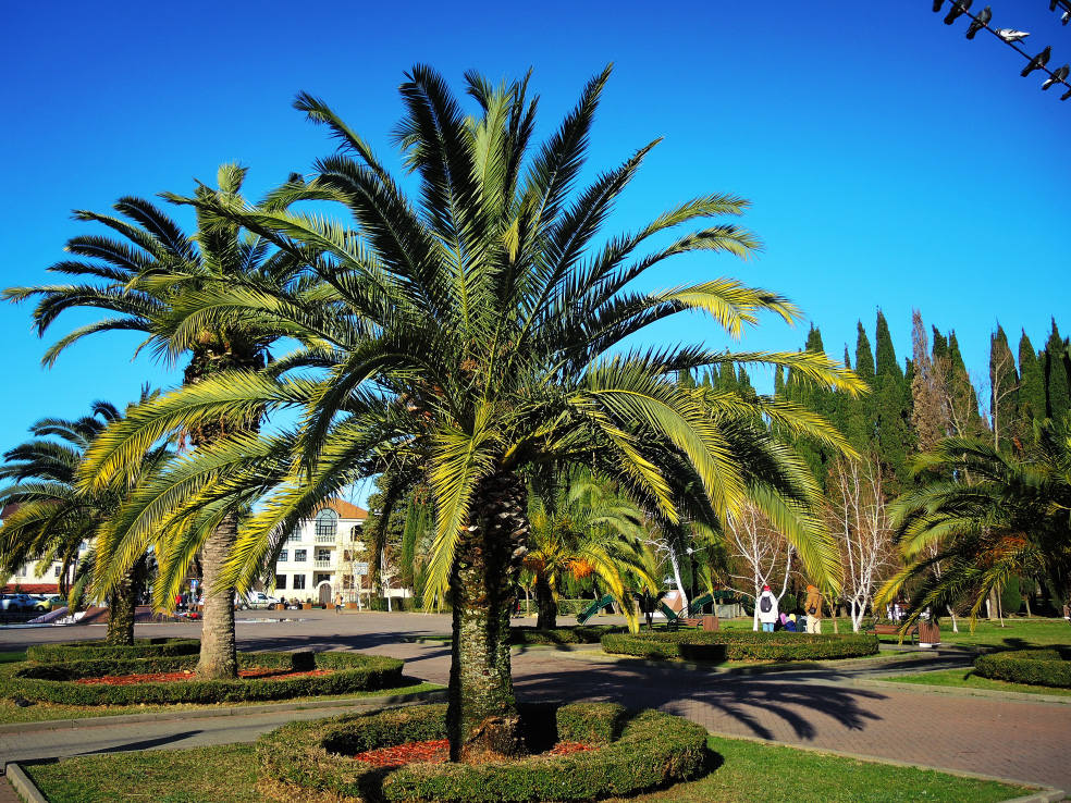 2 января. От вчерашнего не осталось и следа. С самого утра светит солнце. Снова тепло. Можно съездить на какую-нибудь экскурсию. В первый день набрали расписания в разных точках продаж, чтобы спокойно изучить все предложения и выбрать самое интересное. Выделил для себя несколько вариантов. Один из них был заявлен как раз на этот день. После завтрака мы дошли до точки, где продавали эту экскурсию. Продавец оказалась на месте, группа в поездку набиралась. Мы тоже купили билеты. Начало экскурсии - ближе к обеду. Поэтому у нас было время прогуляться по окрестностям. Кому-то эта часть может показаться скучной, потому что всё это я уже показывал не один раз. Вы можете просто промотать её. Лично мне этот район Адлера очень нравится и мне не надоедает прогуливаться здесь. Ни реально, ни виртуально.