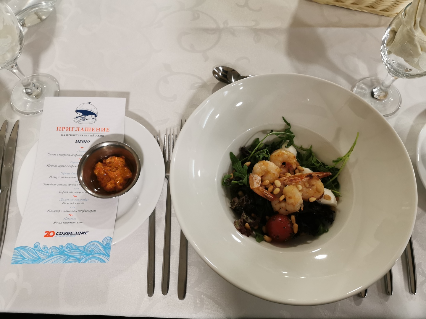 Действительно, как не уходили. Знакомые всё лица. А уж когда за столом не сговариваясь оказалась целиком та же компания, что и ровно два года назад (все - Московский университет), вообще подумалось, не спим ли. Ужин сразу по отправлении, все очень вкусно. Весело, приятно. Жена ушла на мафию, остальные дела уже завтра.