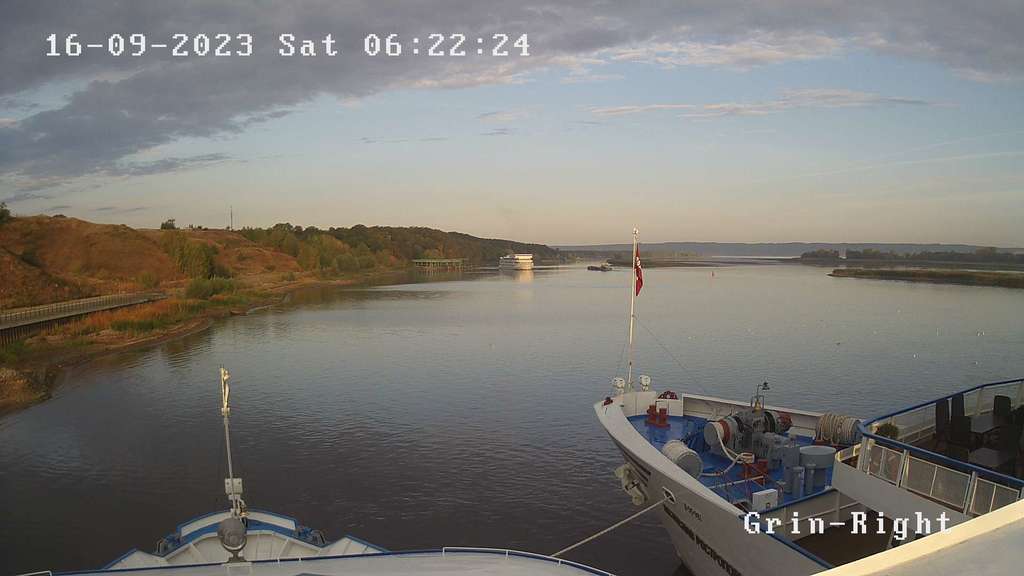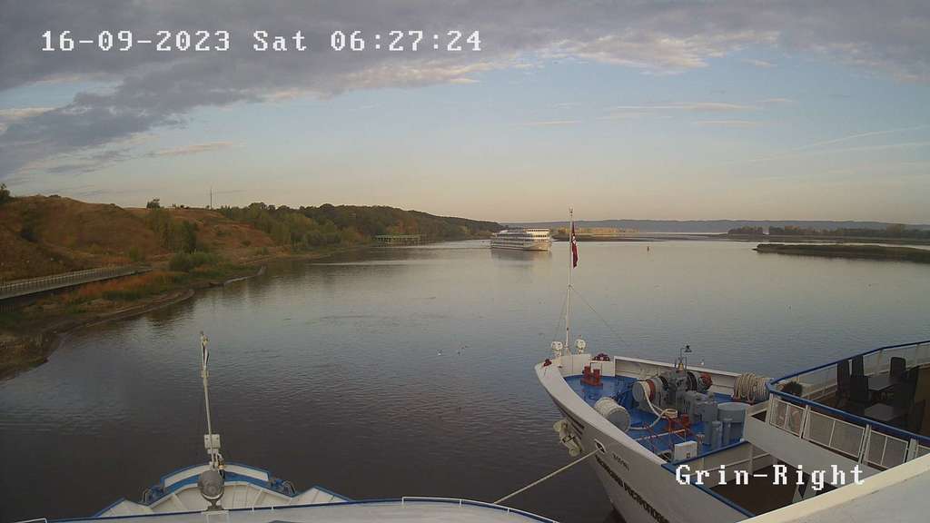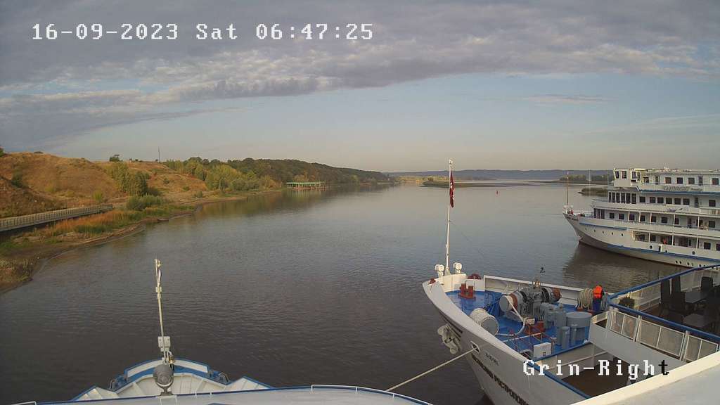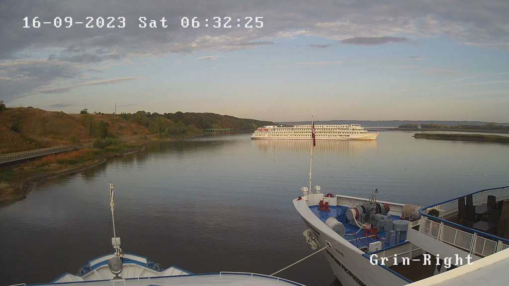 Похоже в Болгаре сегодня будет многотеплоходно. Ещё кто-то подходит с самого сранья. Похоже это "М.Литвинов"