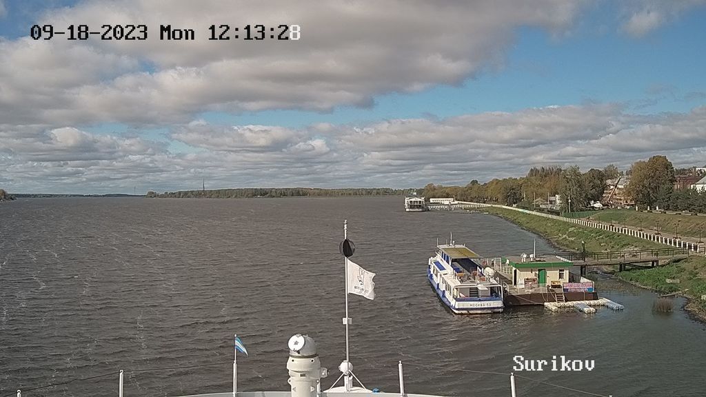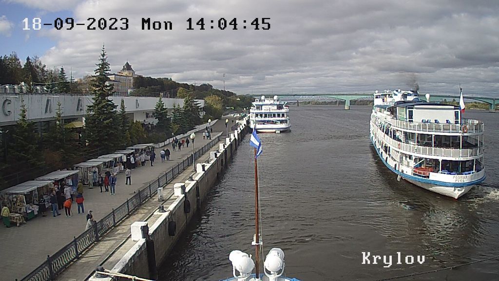 18 сентября 2023 г - в Ярославле стоят "Крылов" и "Родная Русь" "Суриков" в ветреной Костроме. "Виктория" на рейде в Вознесенье. ( не выпускают в Онежское озеро?) "Грин" в НиНовгороде.