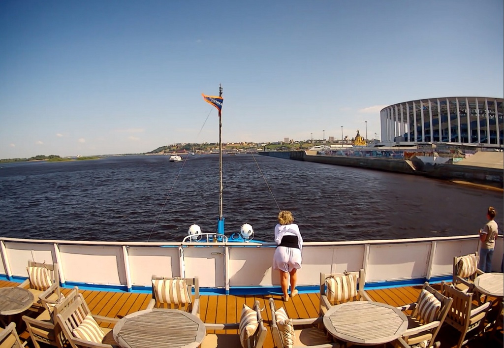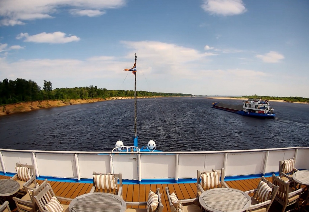 13 июня 2024 г - в 13.15 "Бенуа" повстречал "Кутузова" на Каме, у того места, где раньше стояла пристань в Елабуге. "Кутузов" возвращается в Пермь из Ярославля.