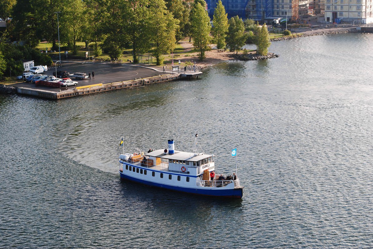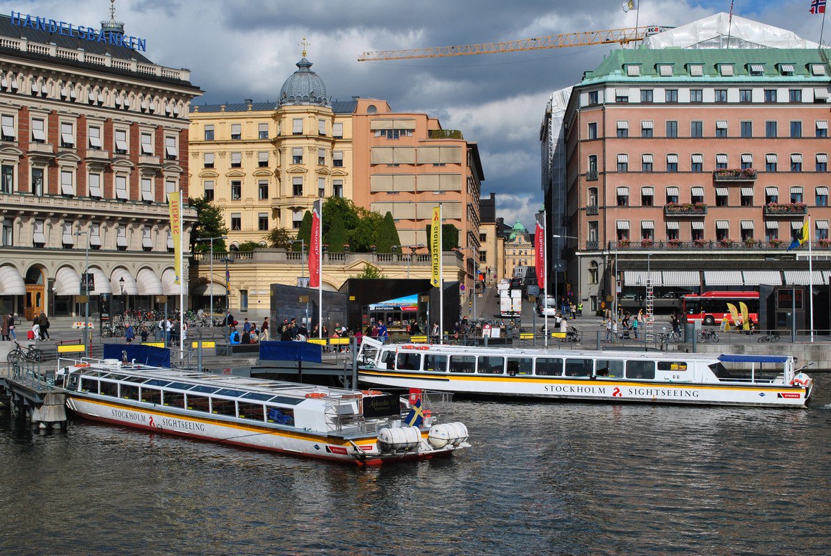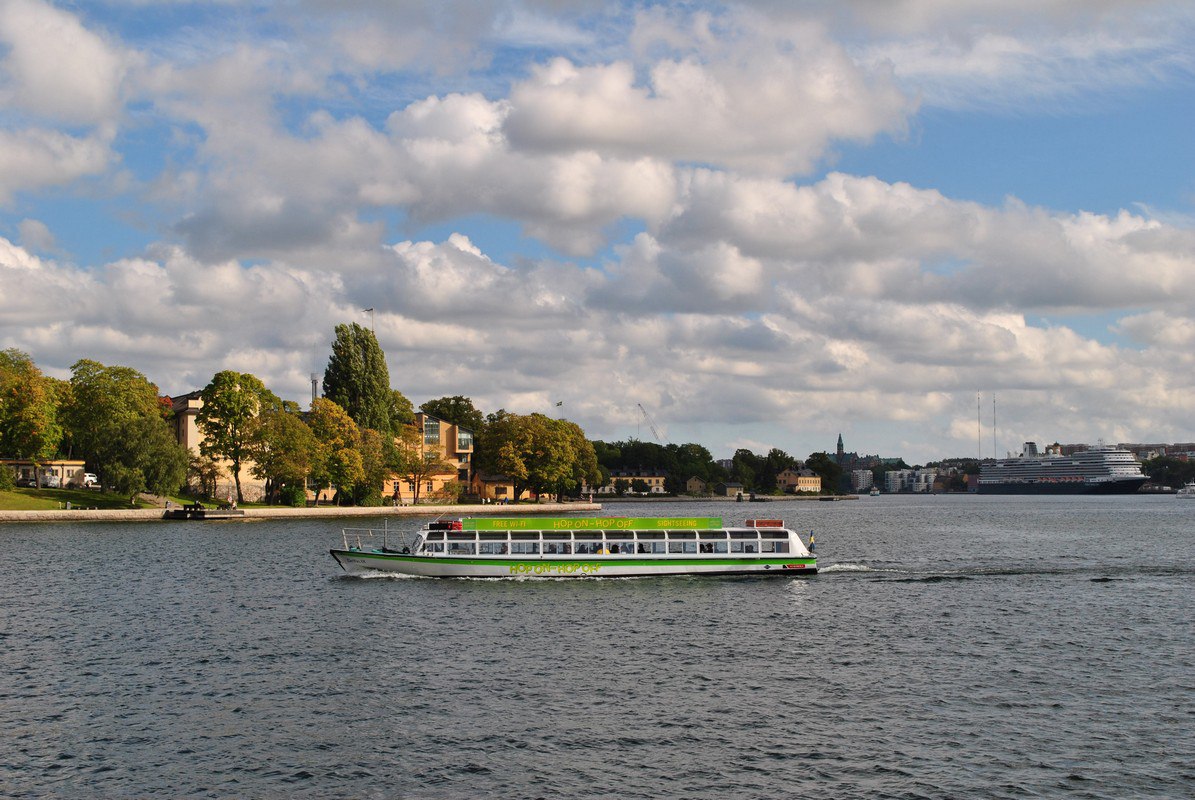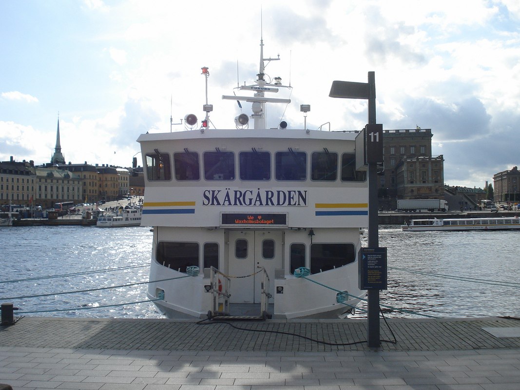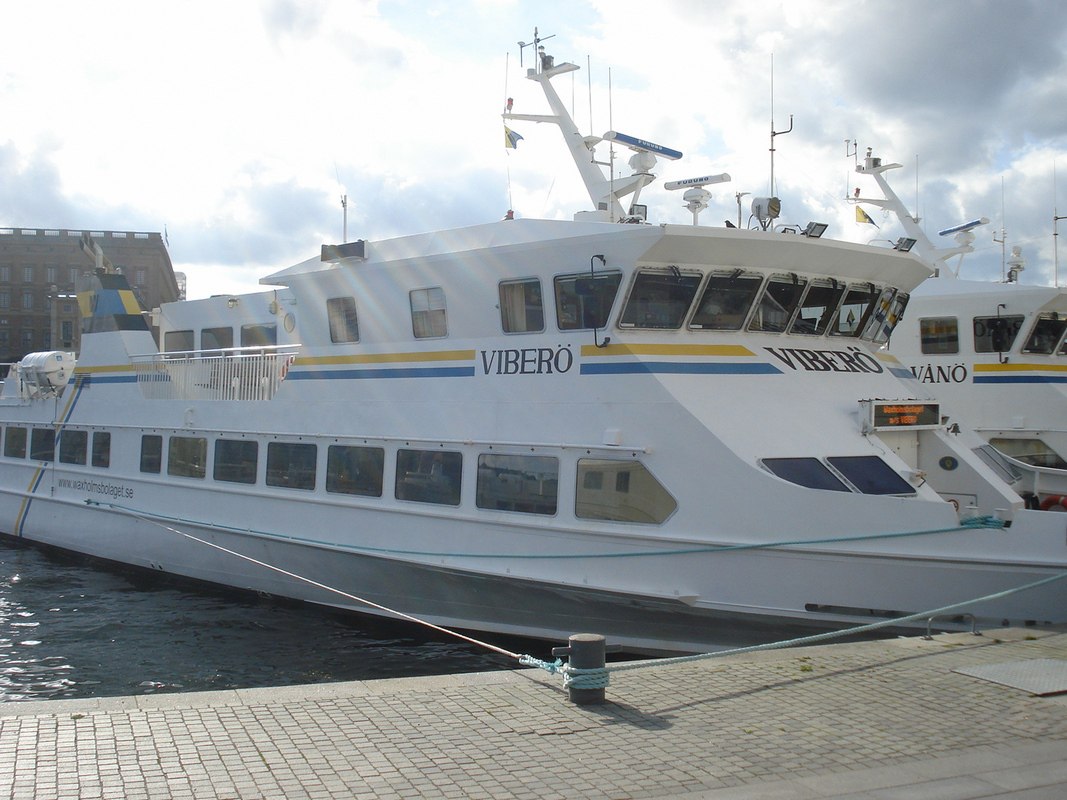 Это уже водные автобусы междугородные, связывают столицу Швеции с отдалёнными посёлками. У этих судов по паромному откидывающийся нос и они довольно быстроходны.