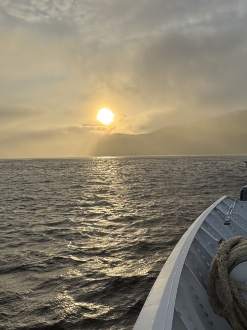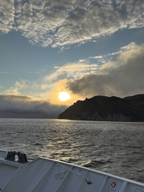 На носу - игра тумана, солнца, неба, гор и Лены. Класс!