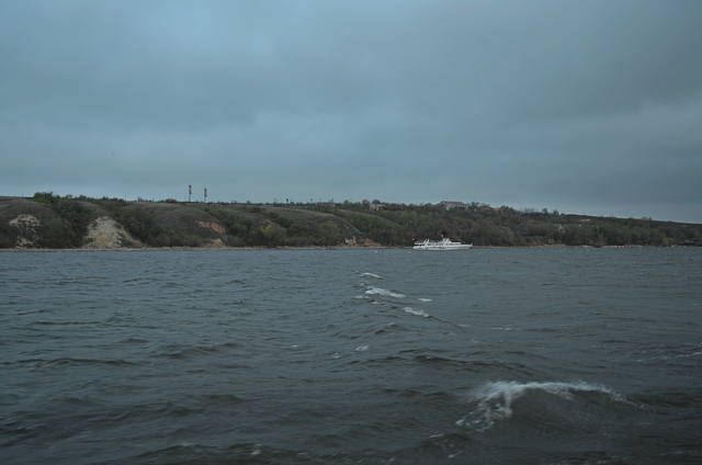 Очень сильный ветер. С первого захода причалить не получилось... Пошли на второй круг.