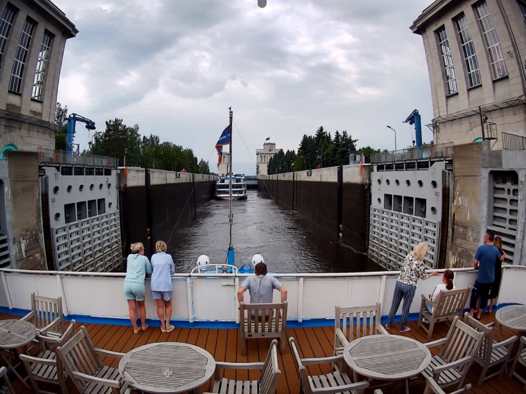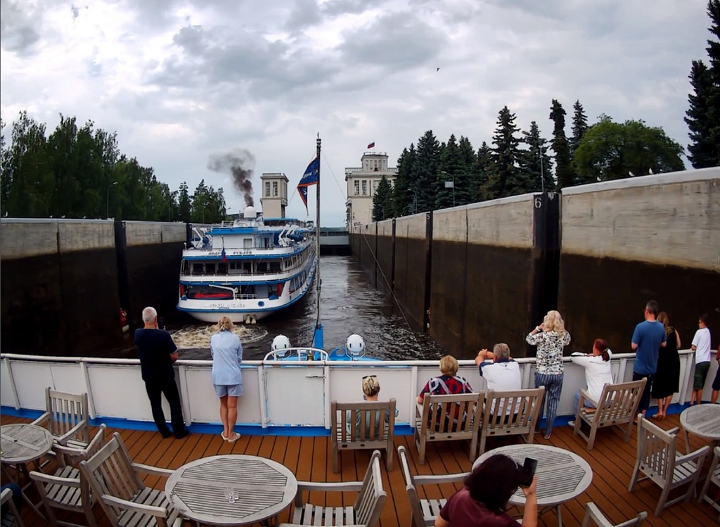 Теплоход "Россия" в верхнем Городецком шлюзе.