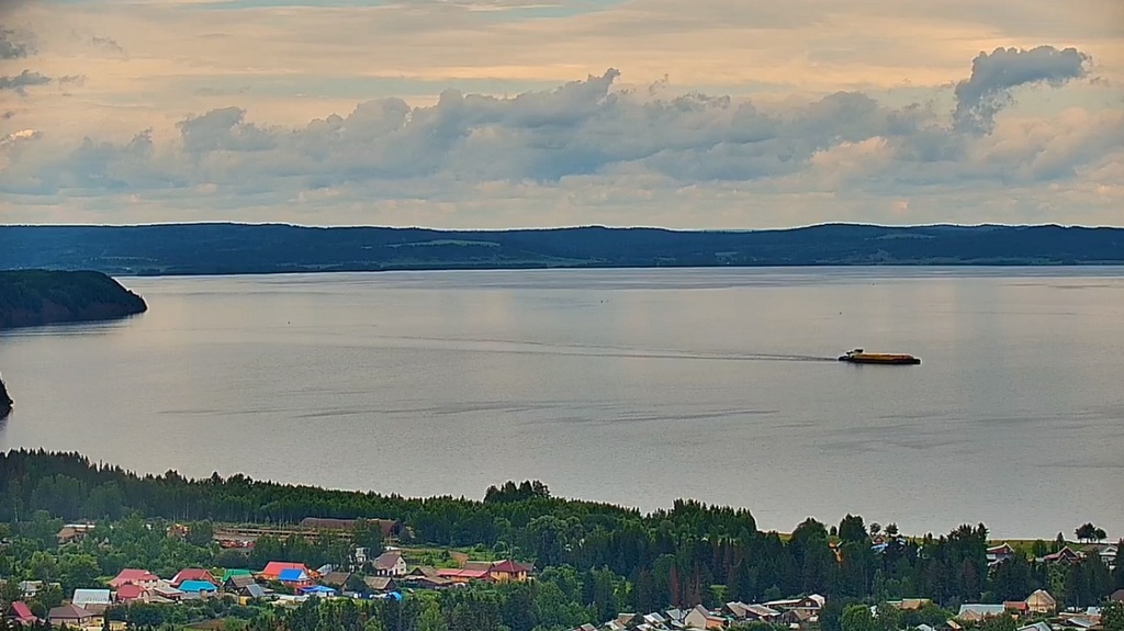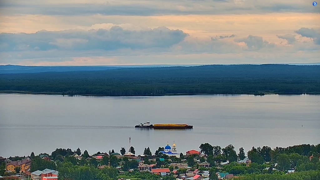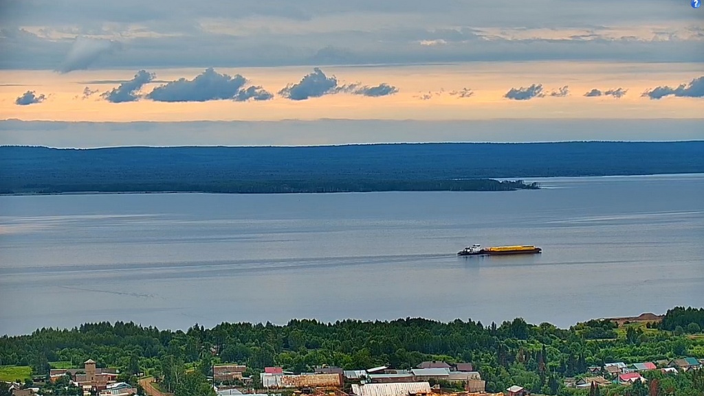 22 июня 2024 года - в 8.46 моск.вр - "Капитан Полушкин" ( ОТ-1513) с грузом пиломатериала , сверху подходит к селу Частые ( река Кама, Воткинское водохранилище, Пермский край). Грузился в Соликамске.