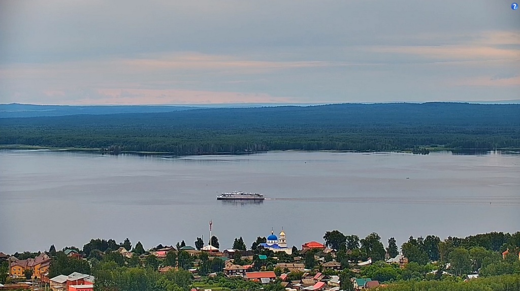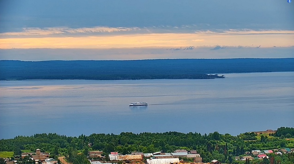 22 июня 2024 года - в 8.07 моск.вр - "Чапаев" проходит с.Елово ( Воткинское водохранилище, Пермский край). Круиз Пермь-Чайковский-Сарапул-Оса-Пермь. Сегодня будет стоять в Осе с 14 до 19.