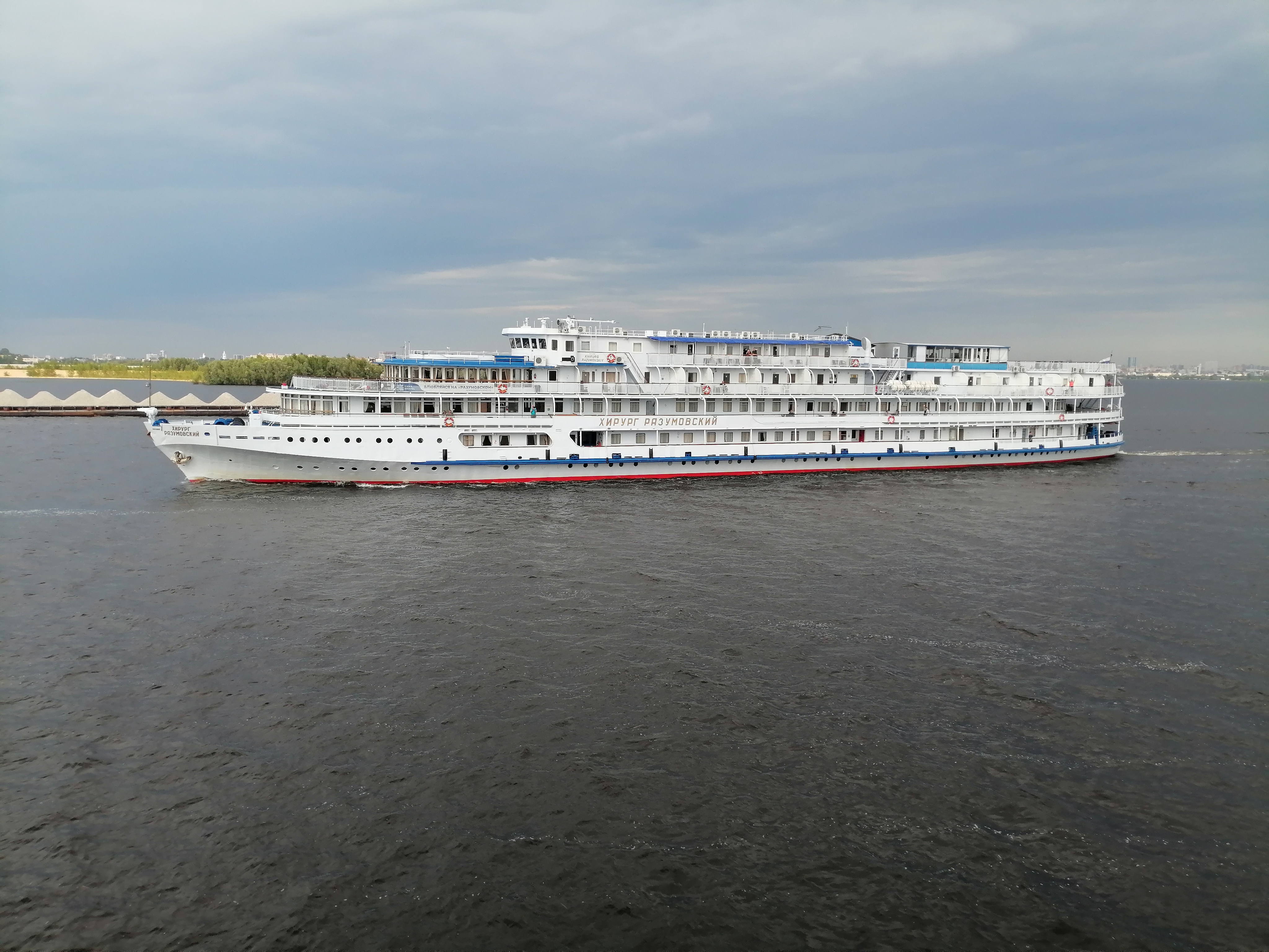 ХИРУРГ РАЗУМОВСКИЙ выпускает от причала в Елабуге МИХАИЛА КУТУЗОВА