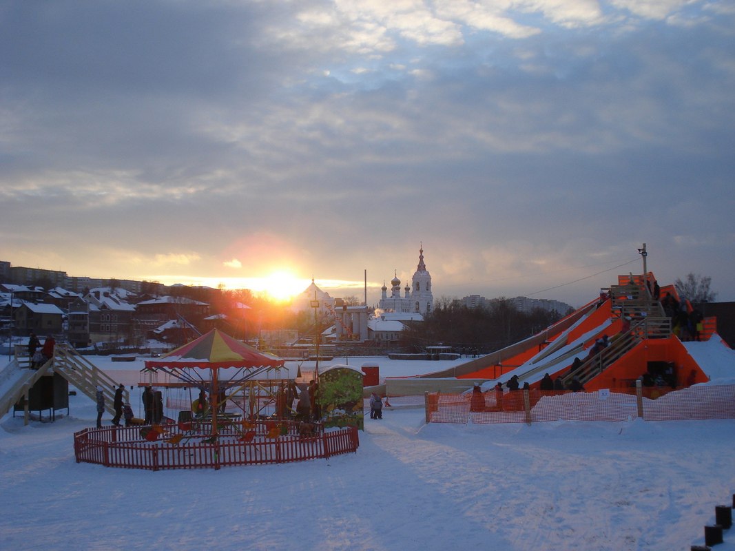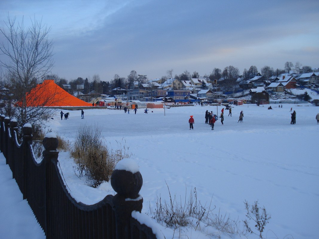 Вид на замёрзший Мотовилихинский пруд и Свято-Троицкий Стефанов мужской монастырь.
