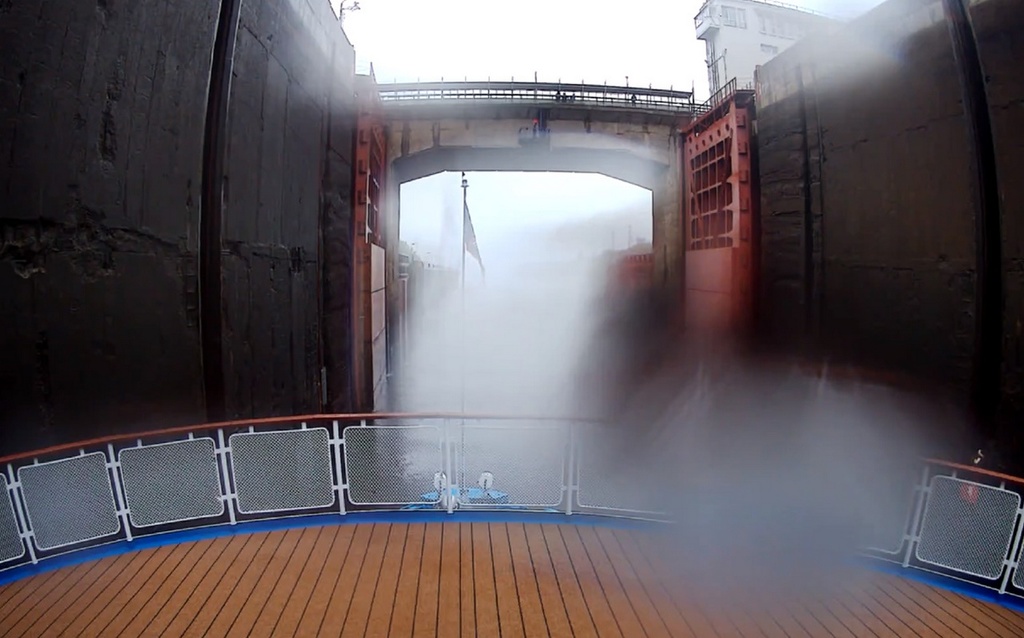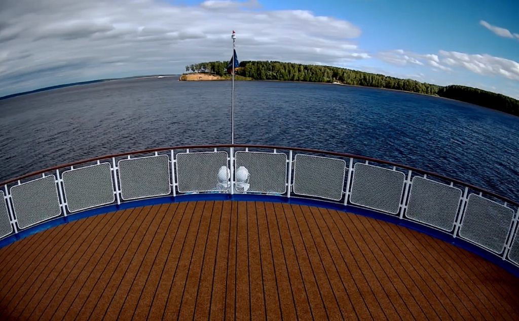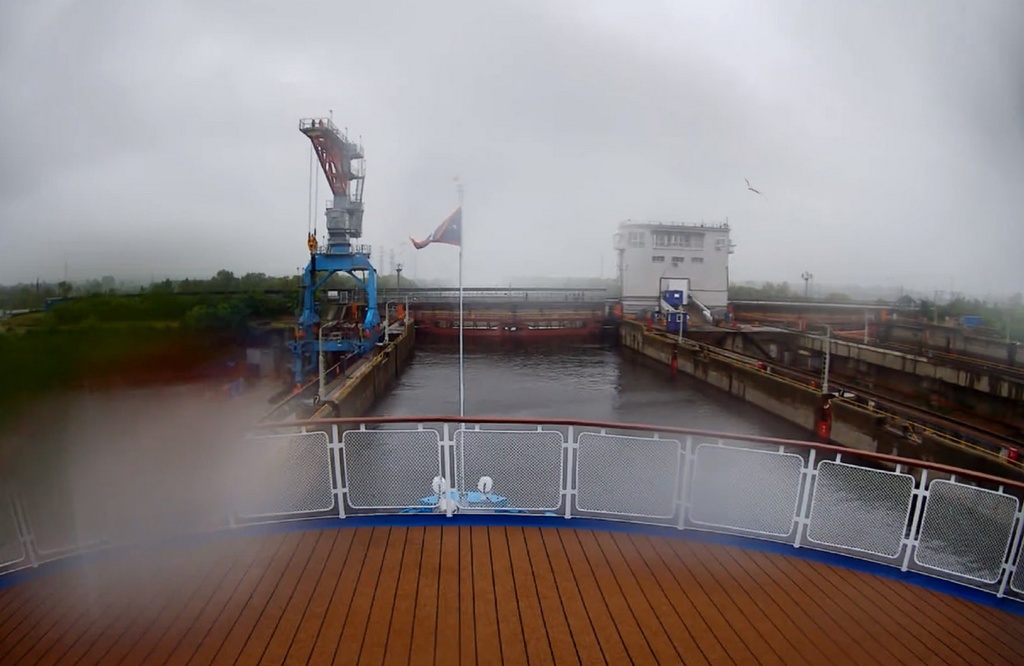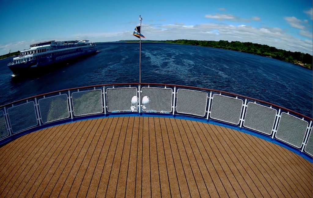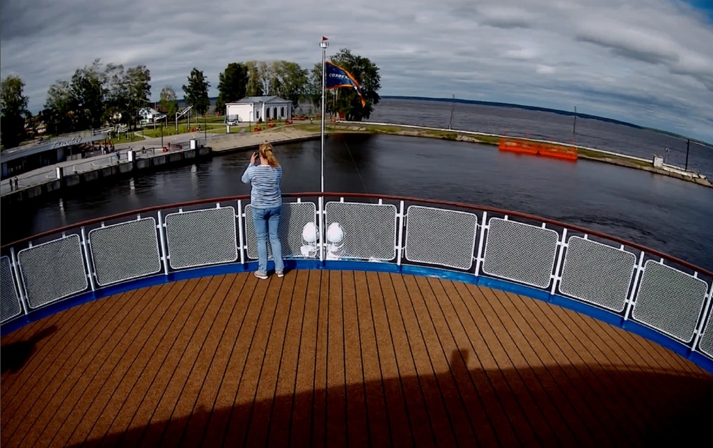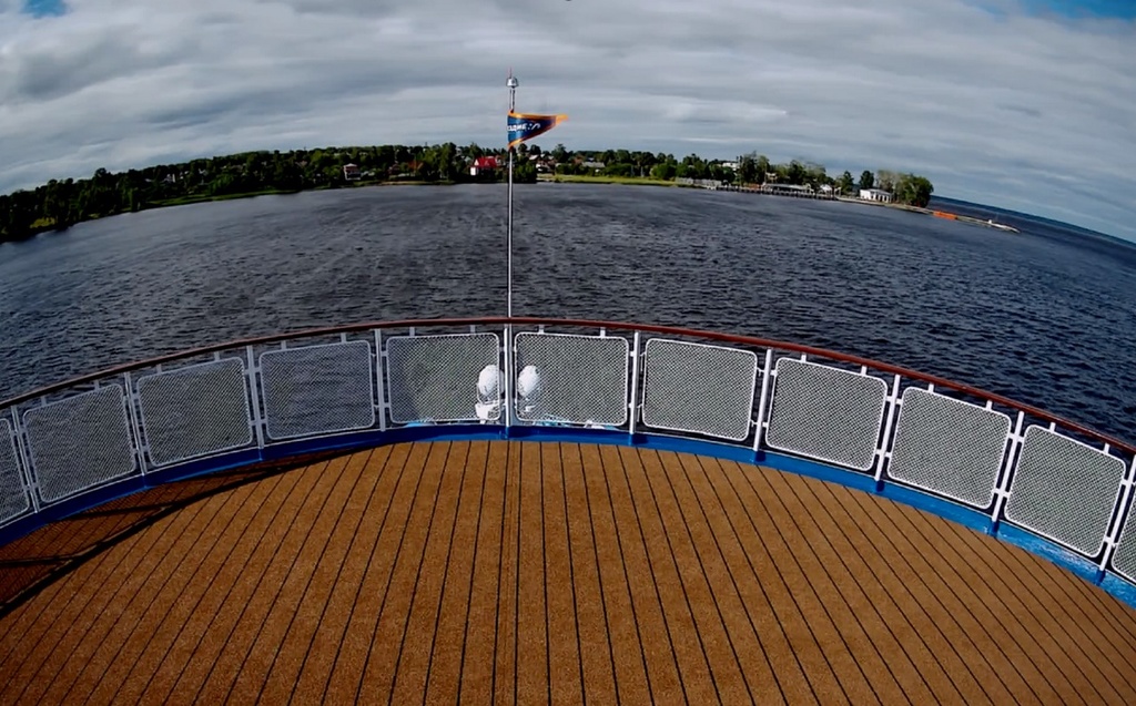 Полевой уютно устроился в одиночку на первом причале СРВ. 2 дня работает флагманом, расположившись во главе большой московской круизной эскадры. Это особенно наглядно видно с противоположного берега из Захарково. Жаль, что там нет веб камеры...