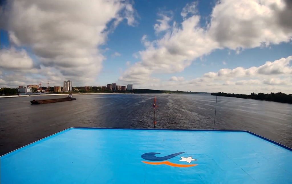 28 июня 2024 года - в 8.50 местного ( 6.50 моск.вр) - "Огни большого города" идёт по Каме у Краснокамска. в это же время, это же место с его бортовой камеры