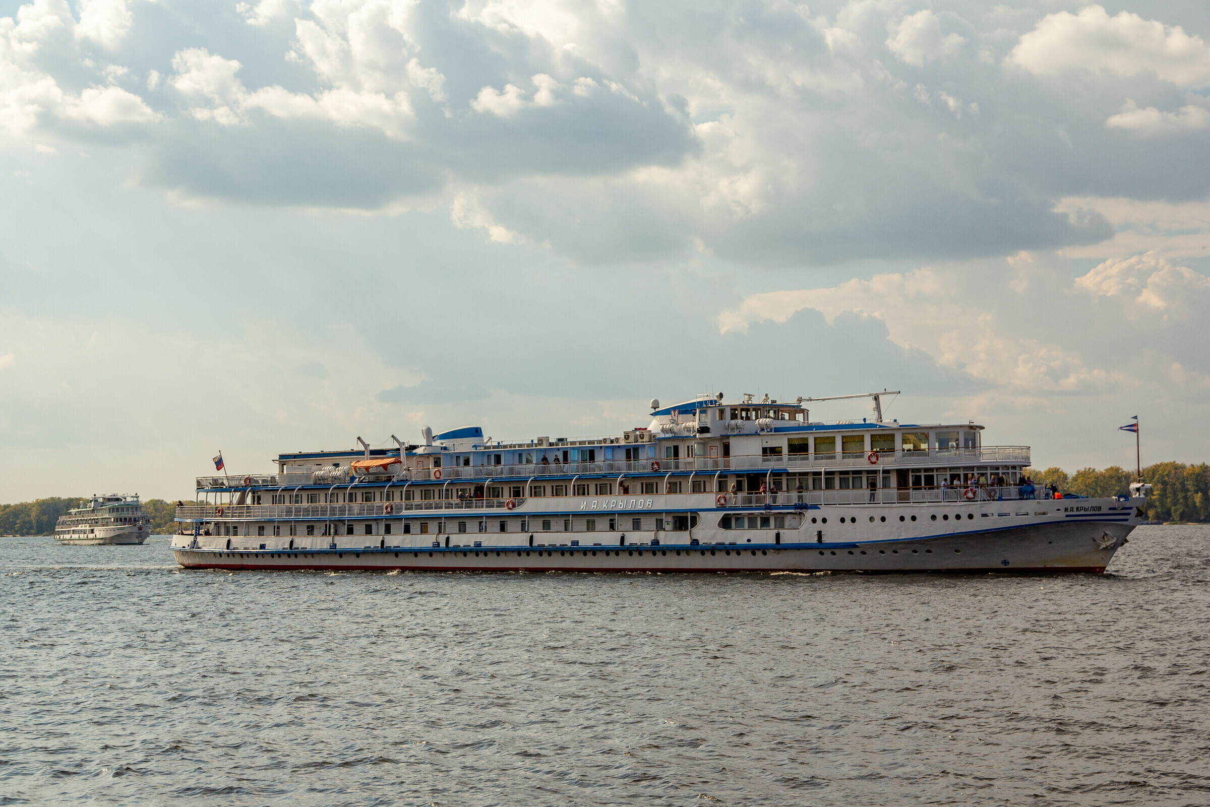 теплоход "И.А. Крылов" в подходном канале Жигулёвского гидроузла в рамках круиза по маршруту: Москва-Самара-Москва,