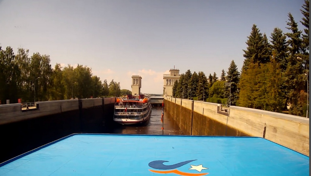Теплоходы "Россия" и "Сириус" в Угличском шлюзе.