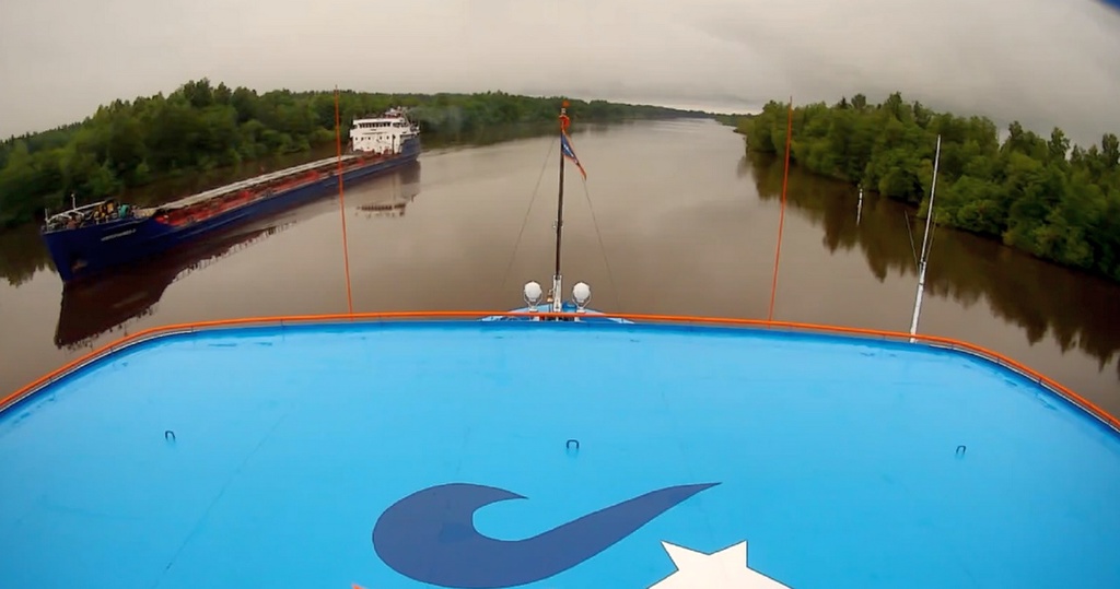 3 июля 2024 года - в 7.00 - "Лунная соната" встретила "Нефтерудовоз"-2 в устье Вытегры.