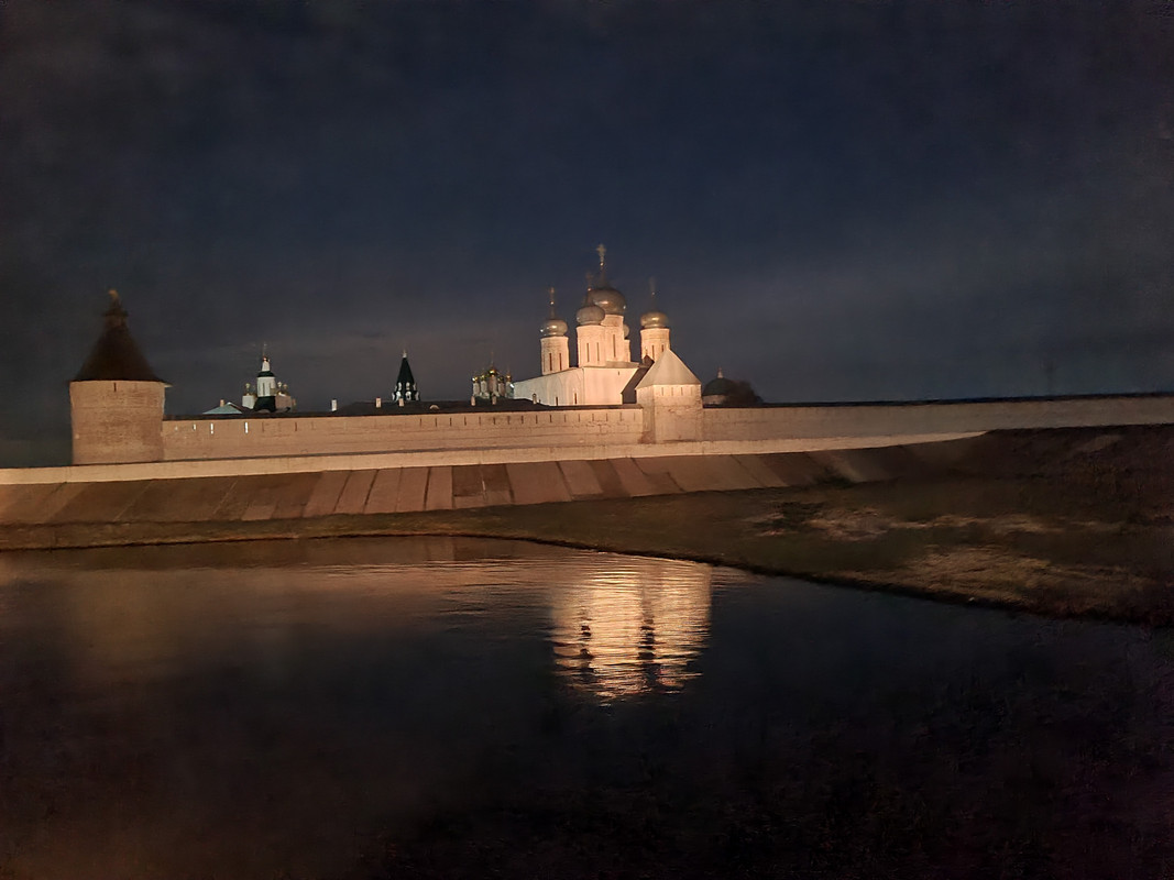 Макарьевский Желтоводский Монастырь, как он в ночи с Волги виден.