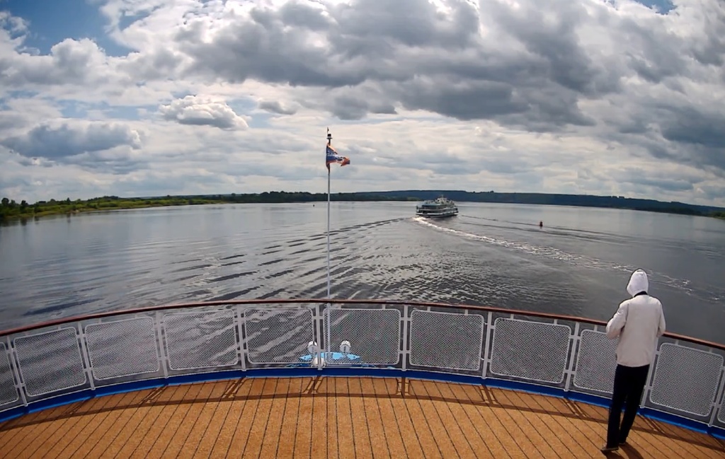 в 9.05- Выйдя из шлюза в Новочебоксарске вниз, "Некрасов" обгоняет "Капитана Пушкарёва".