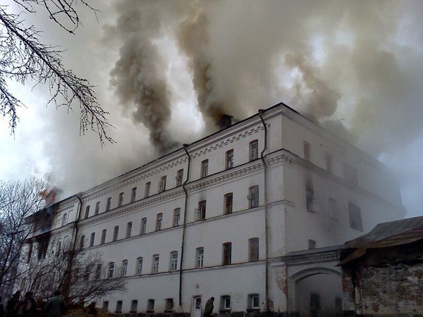 По последним данным МЧС, площадь пожара возросла до 800 кв. м. Обрушилось 300 кв. м кровли.