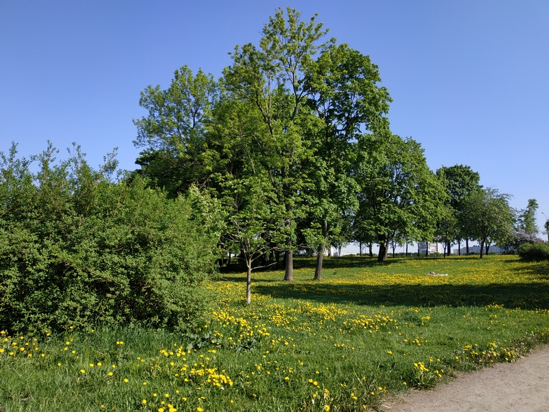 Одуванчиков море, и в этих одуванчиках народ уже вовсю загорает