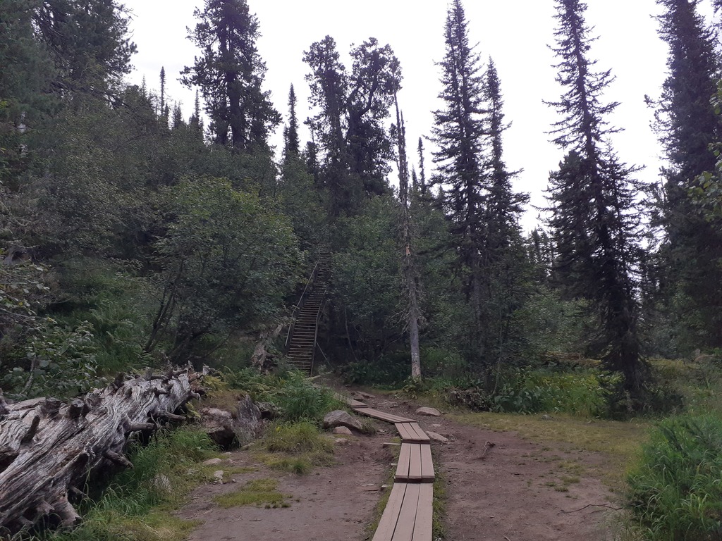 После Радужного озера мы по камням перешли ручей, и тропа - пока ещё "асфальтированно-лифтовая" - стала забирать резко вверх