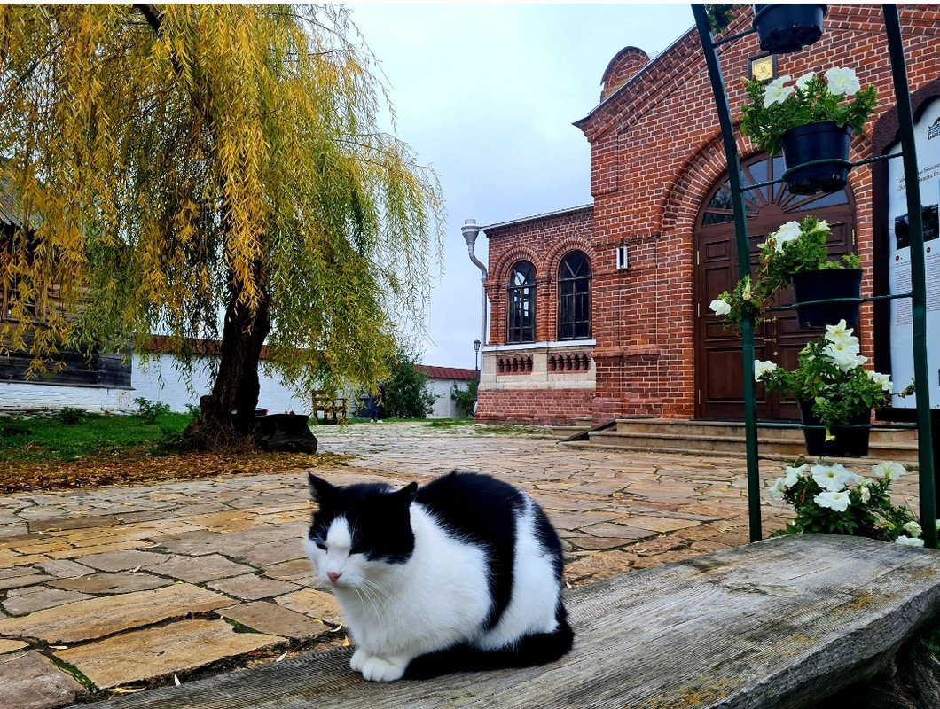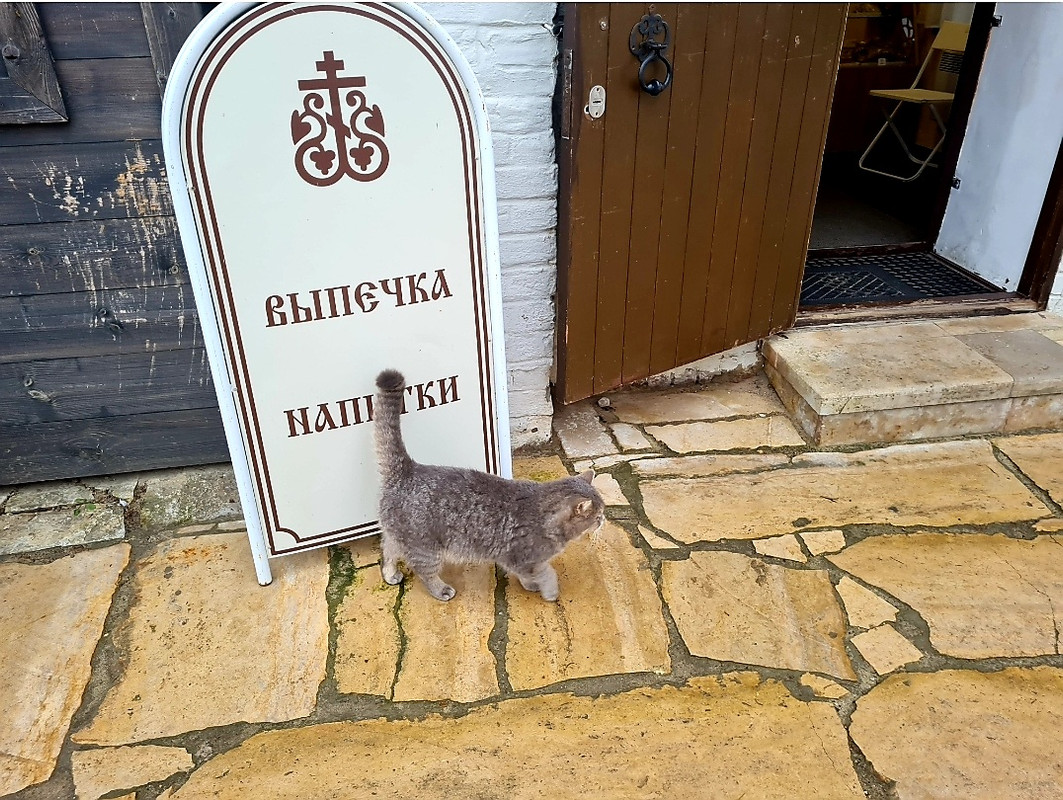 Еще двух монастырских островных кошариков я видел, один дымчатый хромой, и богатку. Богатка также выскочила провожать к теплоходу.