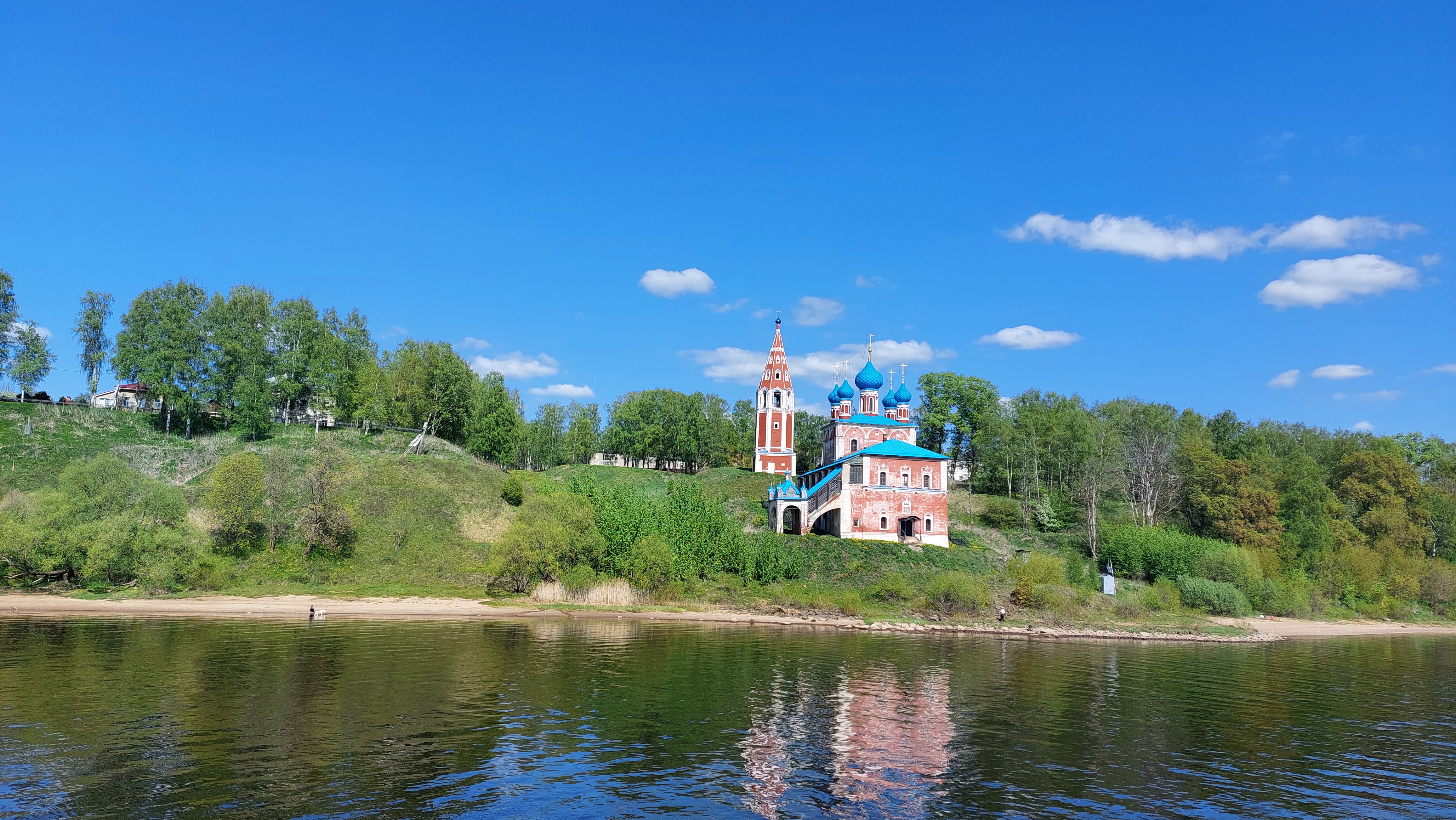 Чернышевский. Подошли к Козьмодемьянску, напомним чаще уже стоит Ю. Никулин, закрыл нам весь вид на Васюки. Я решила не выходить, была много раз, вовсех музеях. Ещё и дождь сквозь солнце накрапывает.