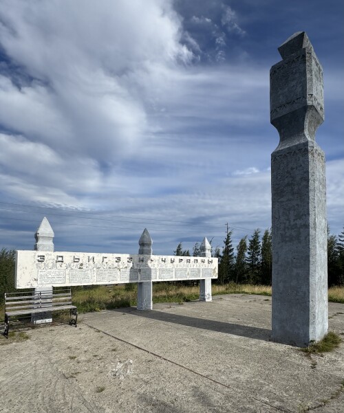 Географически стела вот здесь, так как местные жители по своей инициативе и без учета точных географических данных поставили эту самодельную надпись.