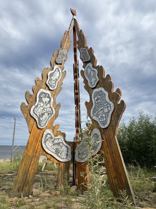 Этот деревянный монумент в форме чичипкана символизирует традиции коренного населения и единение северных народов, населяющих этот край.