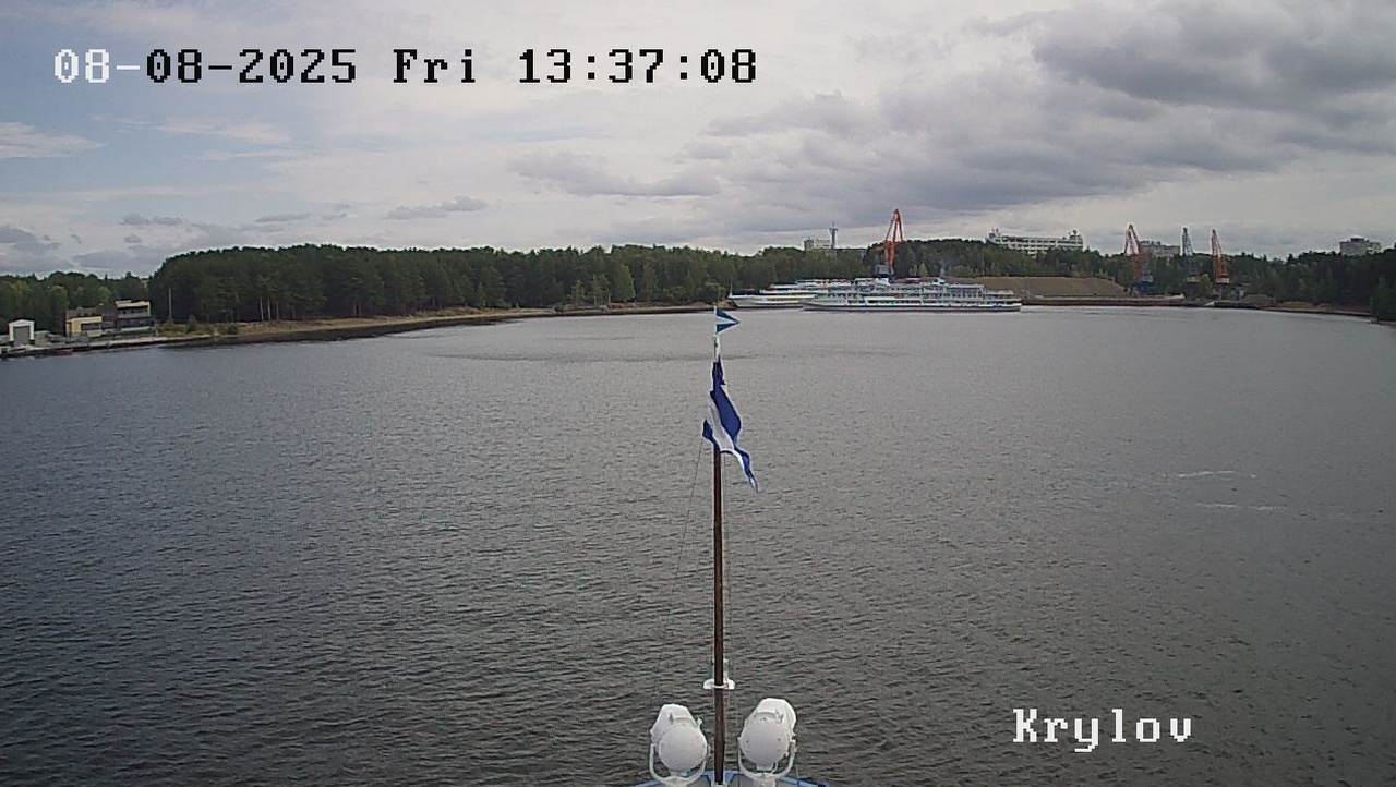На палубе теплохода "К.А. Тимирязев" проходит зарядка.
