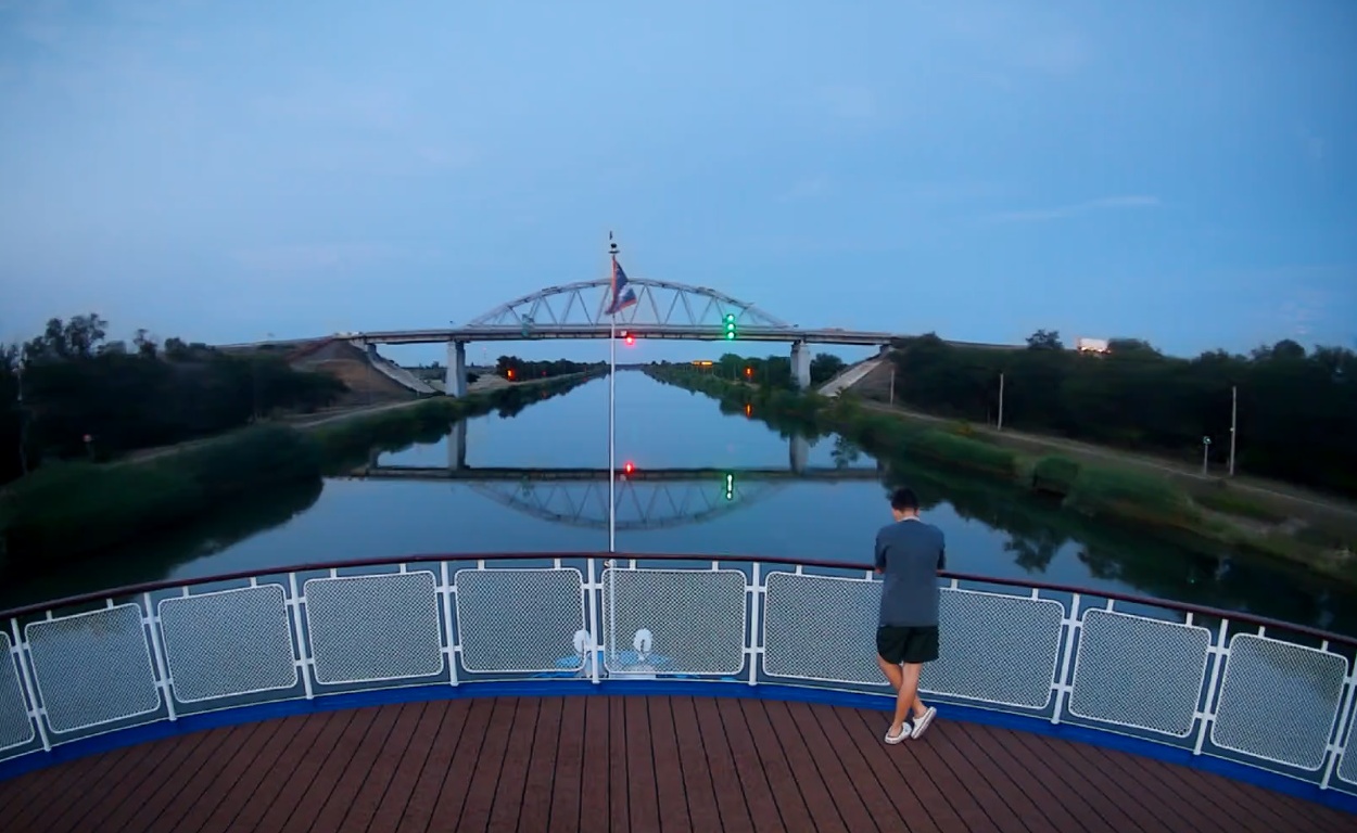 Некрасов выходит из канала в Волгу.