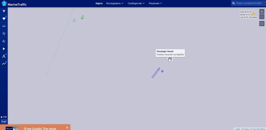 Теплоход "Две столицы" отправляется сегодня из Дубны. На MarineTraffic теплохода пока не видно.