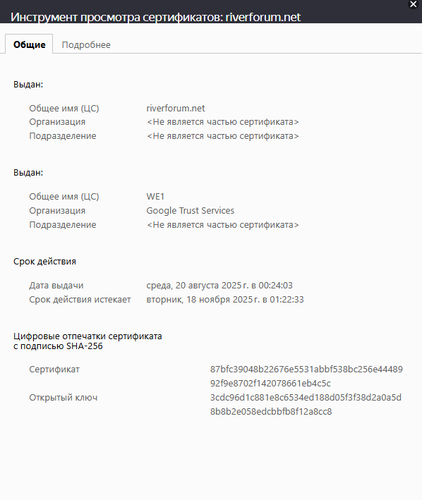 Вопрос к технически подкованным форумчанам, кто пользуется Яндекс-браузером, и особенно к тем, у кого в этом браузере работает, а в других - нет: проверьте пожалуйста SSL-сертификат форума, что там в данных? Особенно интересует, кто его выдал и для какого домена...