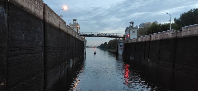 Уже заметно темнеет и мы идём в сторону шлюза номер 7