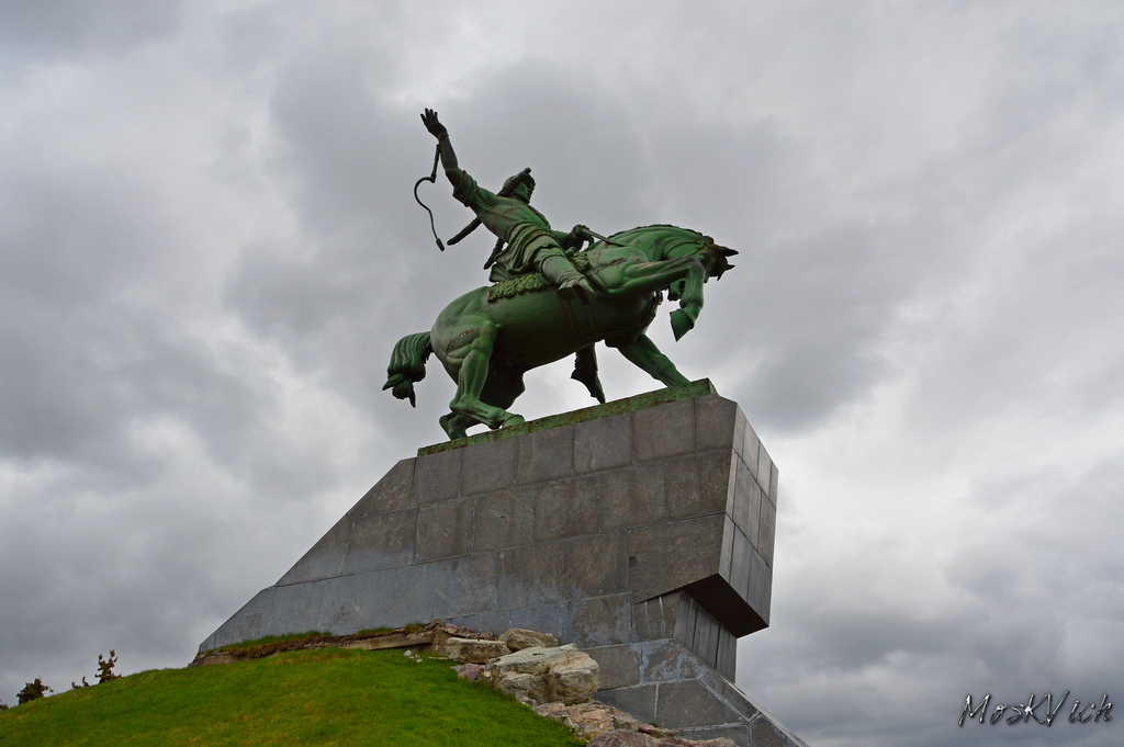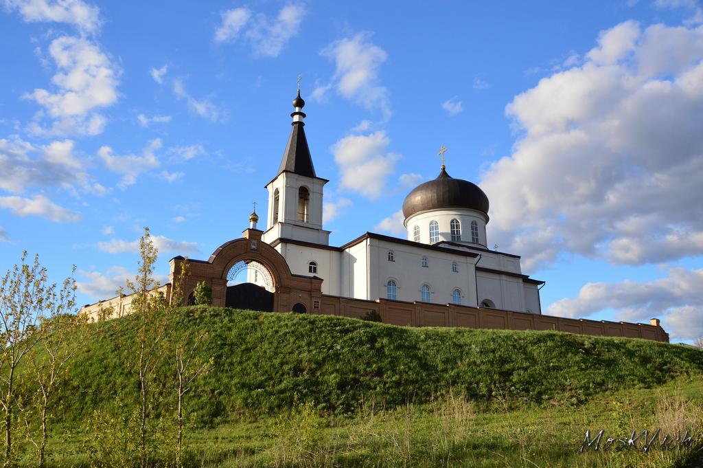 Теперь нас ждёт переезд на самую высокую точку города – Галкину гору –здесь раньше и стояла Бирская крепость, а теперь Михайло-Архангельская церковь (1845 г.). Церковь выстроена на средства бирских купцов Н. Серафимова и Д. Балаева. В начале 1950-х годов в церкви служил дед нынешнего патриарха — священник Василий Гундяев.