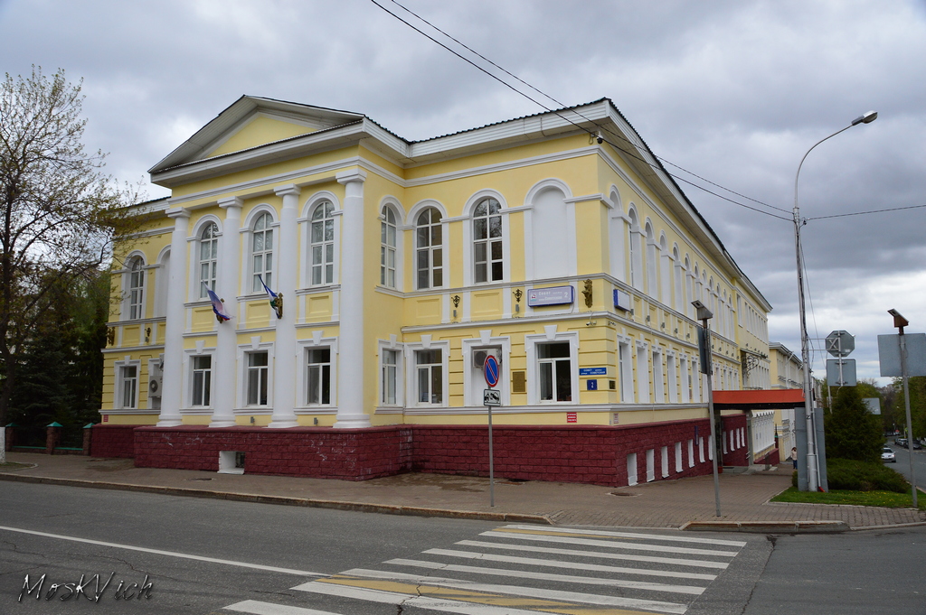 Здание бывшей Земской управы (1912 г.) Рядом была сооружена Арка в честь 5-летия вступления Бирской пожарной команды в Императорское пожарное общество.