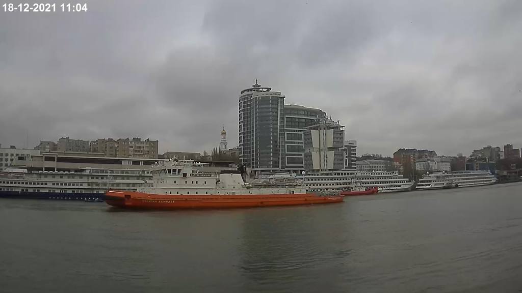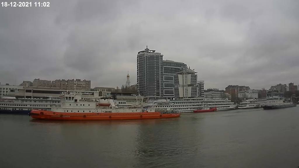 Снова заработала камера в Ростове-на-Дону, с видом на левый берег и на Ворошиловский мост, причал пока пустой.