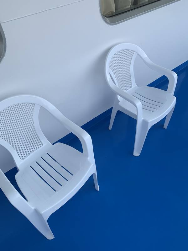 И ещё одна приятность: я обошла теплоход с проверкой и обнаружила, что стулья-убийцы все до единого заменены на другие.