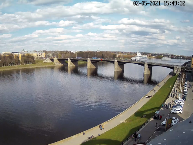 "Княжна Виктория" в Твери, у причалов теплоходы "Александр Грин" и "Родная Русь". Лавирует теплоход "Константин Коротков", пропуская к "Александру Грину.
