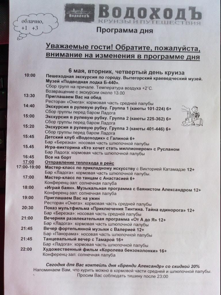 Кстати, на судах зарубежных операторов я слышал то, как это должно быть: "Всем взять спасательные жилеты и следовать на пункт сбора". Отдельно подчеркивают нюанс об опасности надевать жилет в помещении. Жилеты надеваются только на пункте сбора.