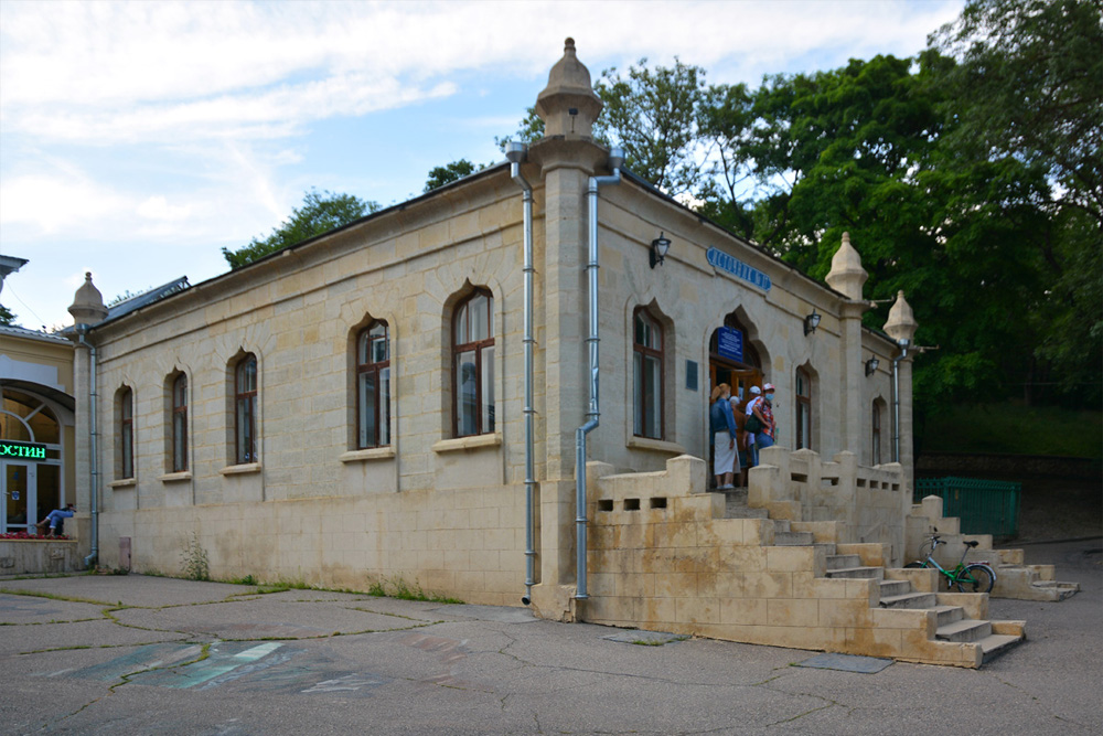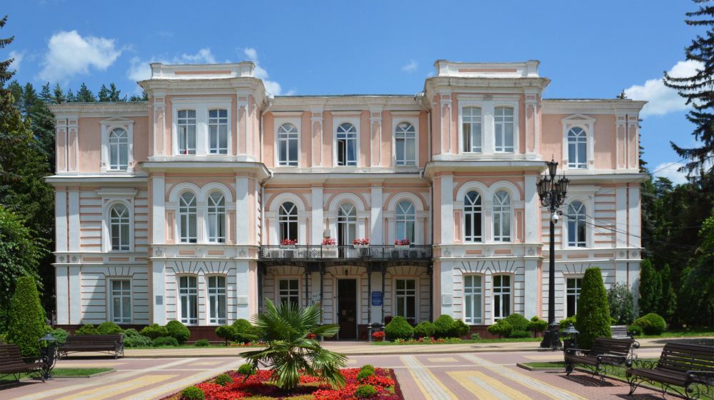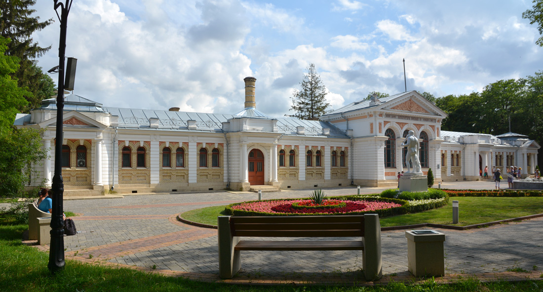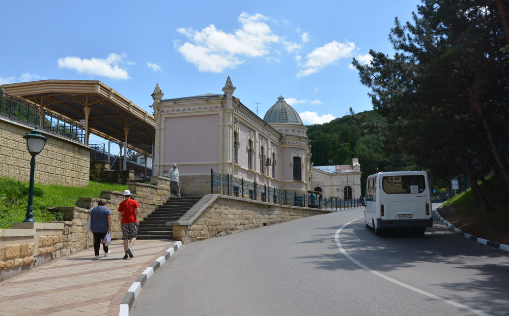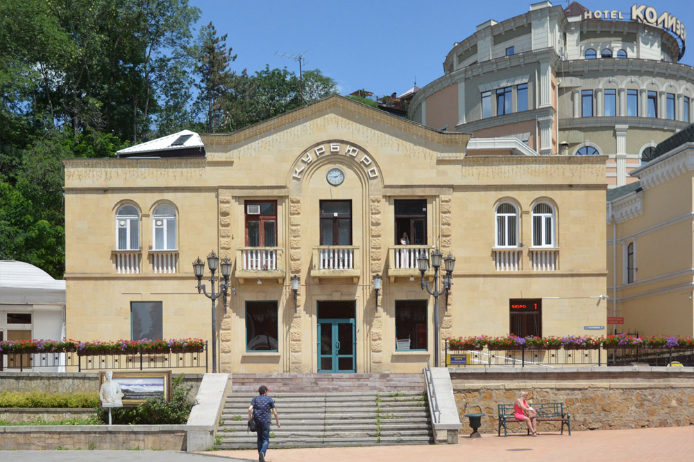 Экскурсия в Ессентуках началась с осмотра здания грязелечебницы, построенного в начале 20 в. в неоклассическом стиле.